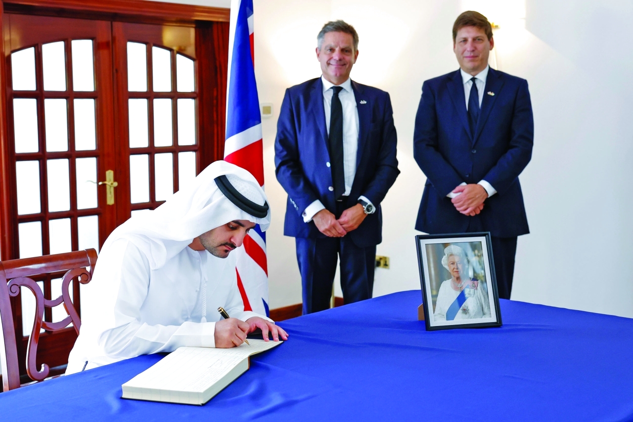 وقال سموه، عبر حسابه الرسمي في «تويتر»: «زرت القنصلية البريطانية في دبي، لتقديم واجب العزاء في وفاة الملكة إليزابيث الثانية، والتقيت بباتريك مودي سفير المملكة المتحدة في الإمارات، وسيمون بيني القنصل العام للمملكة في دبي، وتحدثنا عن إسهامات الملكة الراحلة في توطيد العلاقات الثنائية، وعمق الروابط التي تجمع بين شعبي البلدين».