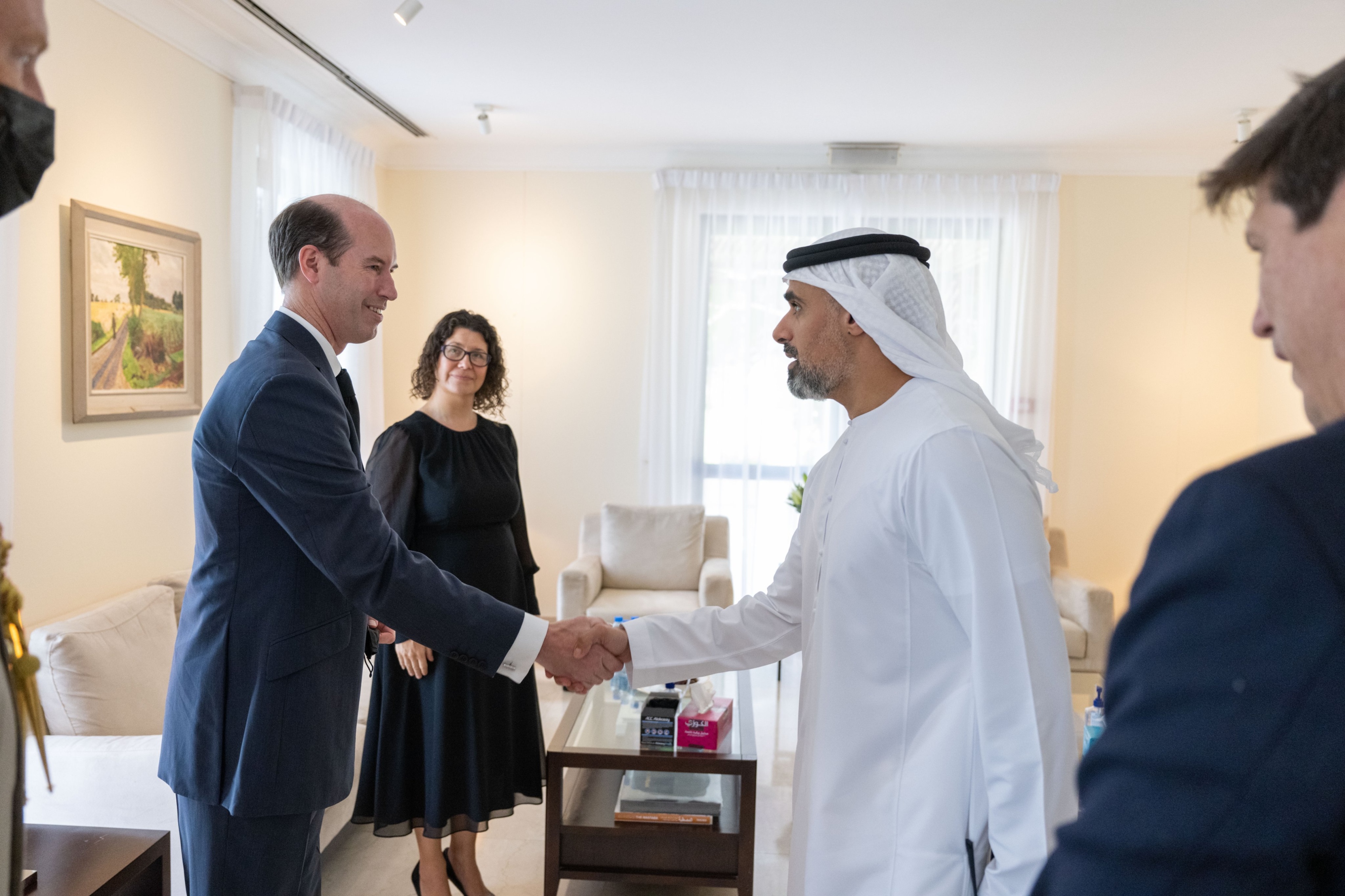 رافق سموّه خلال هذه الزيارة كل من سعادة الشيخ سلطان بن حمدان بن زايد آل نهيان، سفير الدولة لدى مملكة البحرين، ومعالي الدكتور سلطان أحمد الجابر، وزير الصناعة والتكنولوجيا المتقدمة، العضو المنتدب والرئيس التنفيذي لأدنوك ومجموعة شركاتها، وسعادة سيف سعيد غباش، الأمين العام للمجلس التنفيذي لإمارة أبوظبي.