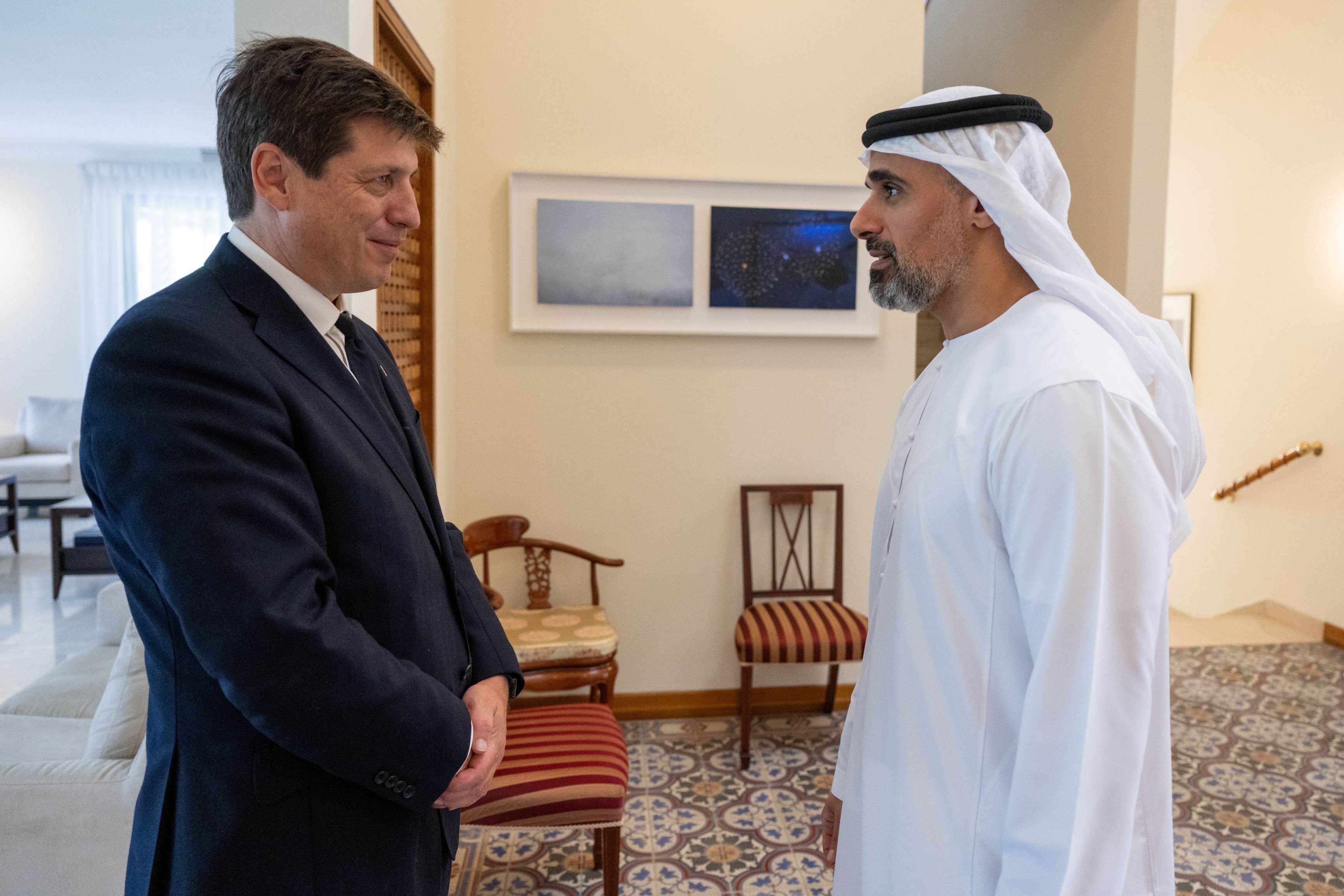 قدم سمو الشيخ خالد بن محمد بن زايد آل نهيان، عضو المجلس التنفيذي لإمارة أبوظبي، رئيس مكتب أبوظبي التنفيذي، خالص تعازيه في وفاة الملكة إليزابيث الثانية خلال زيارته، اليوم، إلى مقر سفارة المملكة المتحدة في أبوظبي.