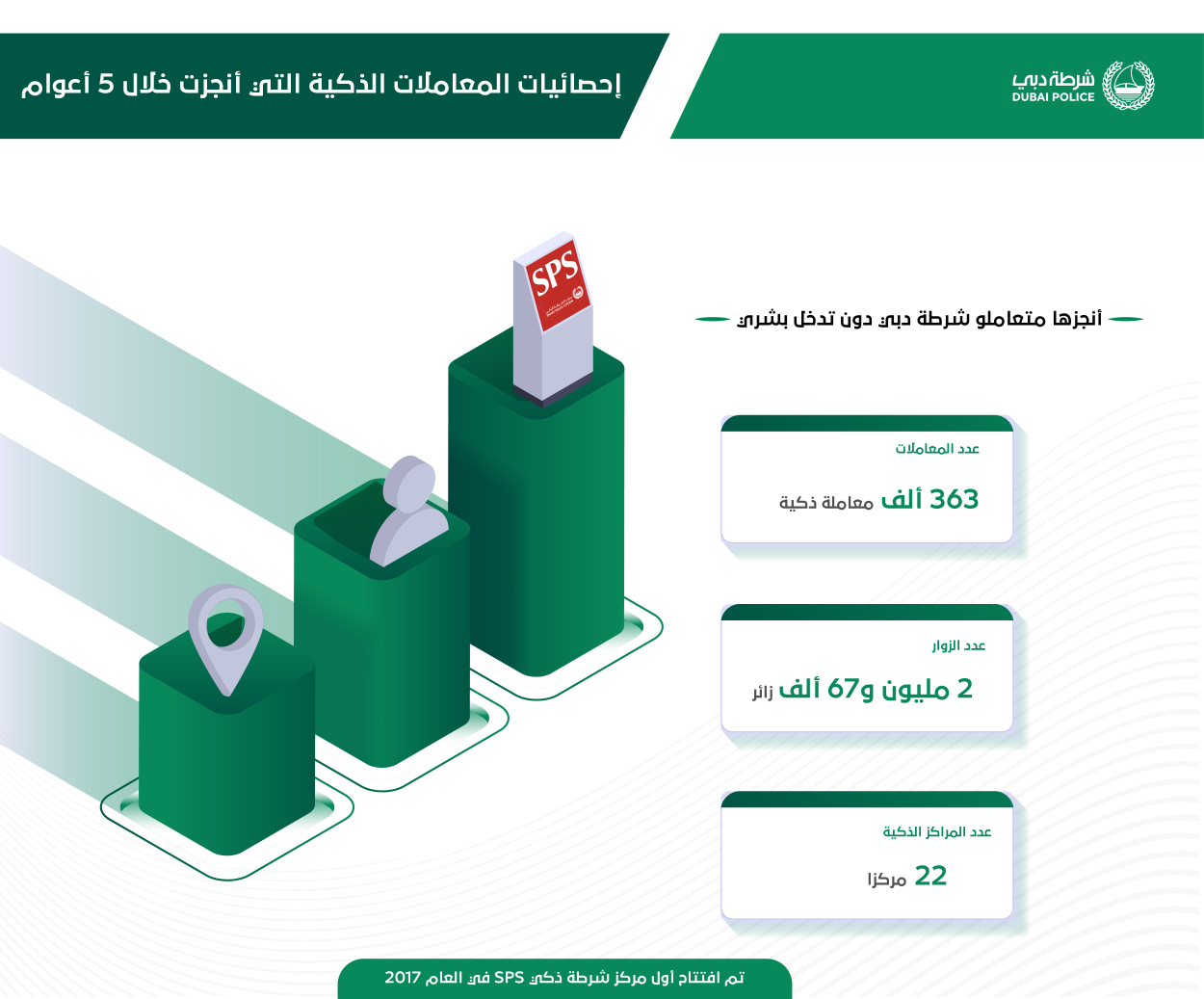 كشفت القيادة العامة لشرطة دبي عن إحصائيات المعاملات الذكية التي أنجزت منذ افتتاح أول مركز شرطة ذكي SPS في العام 2017، حيث بلغ عدد المعاملات أكثر من 363 ألفا و189 معاملة ذكية، أنجزها متعاملو شرطة دبي دون تدخل بشري، في حين بلغ الزوار لهذه المراكز البالغ عددها 22 مركزاً ذكياً متوزعة في مختلف مناطق إمارة دبي بما فيها مراكز الشرطة ونقاط الضواحي، بلغ مليونين و67 ألف زائر.