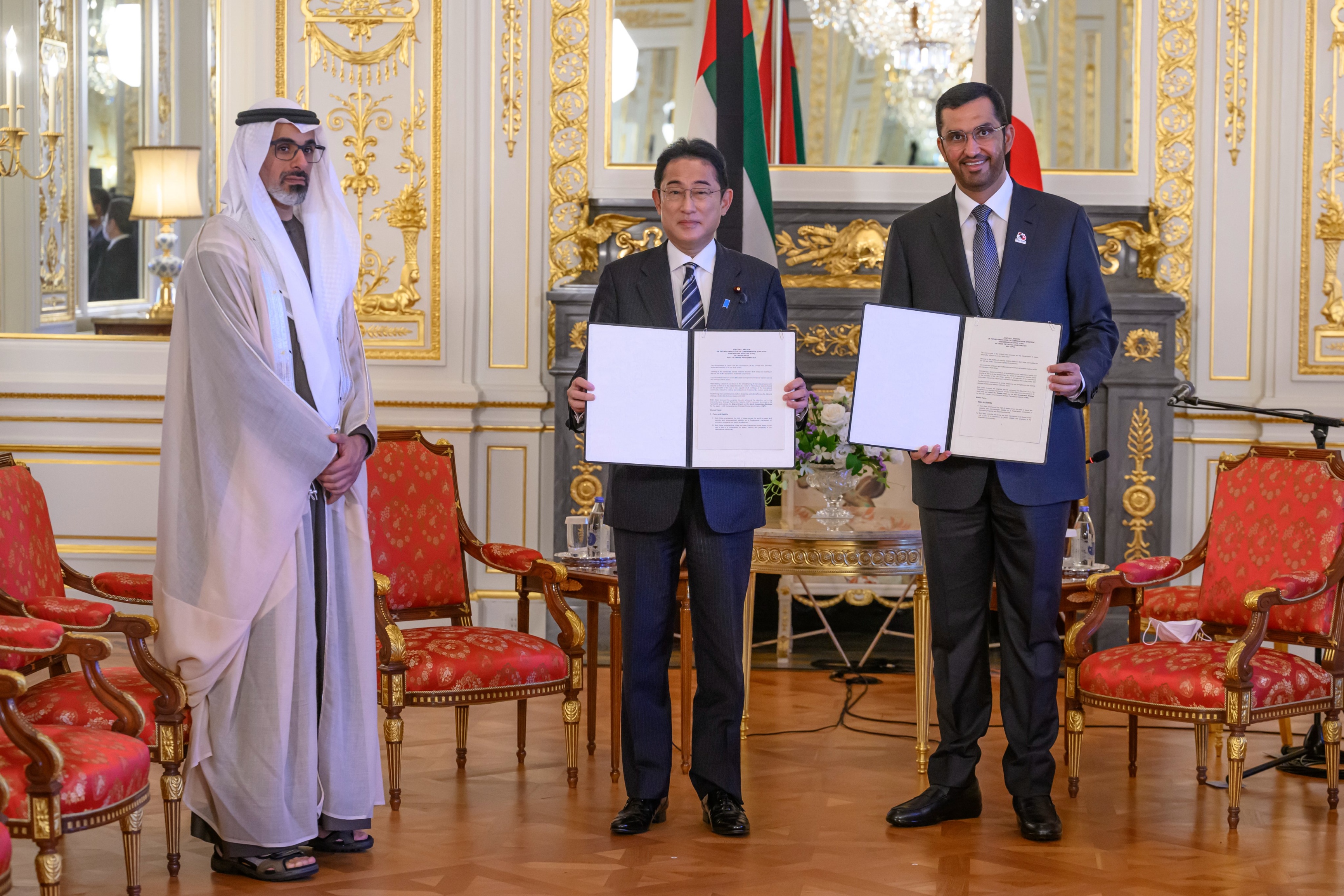 كما شهد سموه إطلاق اتفاقية الشراكة الاستراتيجية الشاملة بين دولة الإمارات واليابان والتي تم الإعلان عنها عام 2018 خلال زيارة رئيس الوزراء الياباني السابق شينزو آبي إلى دولة الإمارات.