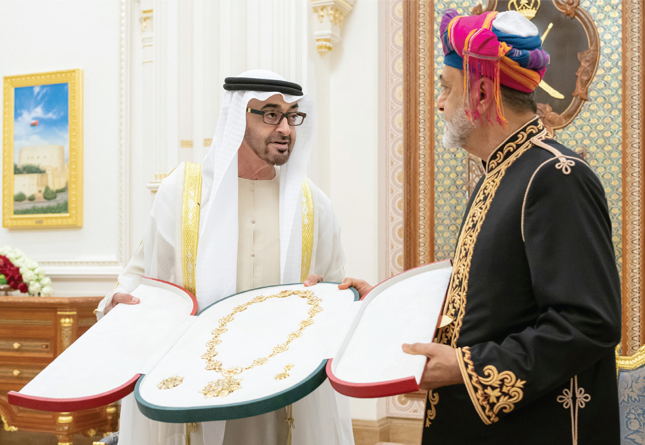 وتبادل سموه وأخوه السلطان هيثم بن طارق الأوسمة والهدايا التذكارية، وحظيت الزيارة التاريخية لسموه باحتفاء وحفاوة رسمية وشعبية كبيرة.
