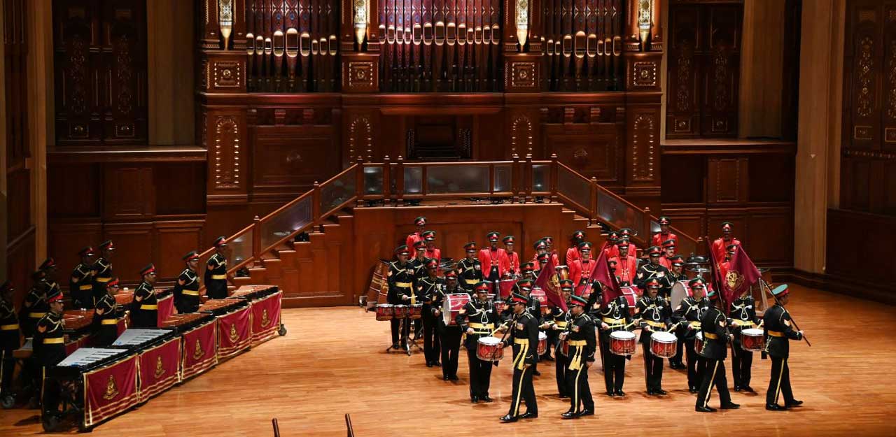 وأدت فرقة الأوركسترا السيمفونية السلطانية مقطوعات موسيقية ترحيباً بزيارة صاحب السمو رئيس الدولة.. بجانب عروض للفرقة العسكرية الاستعراضية للطبول والفرقة الفولالية وموسيقى الحرس السلطاني العماني.