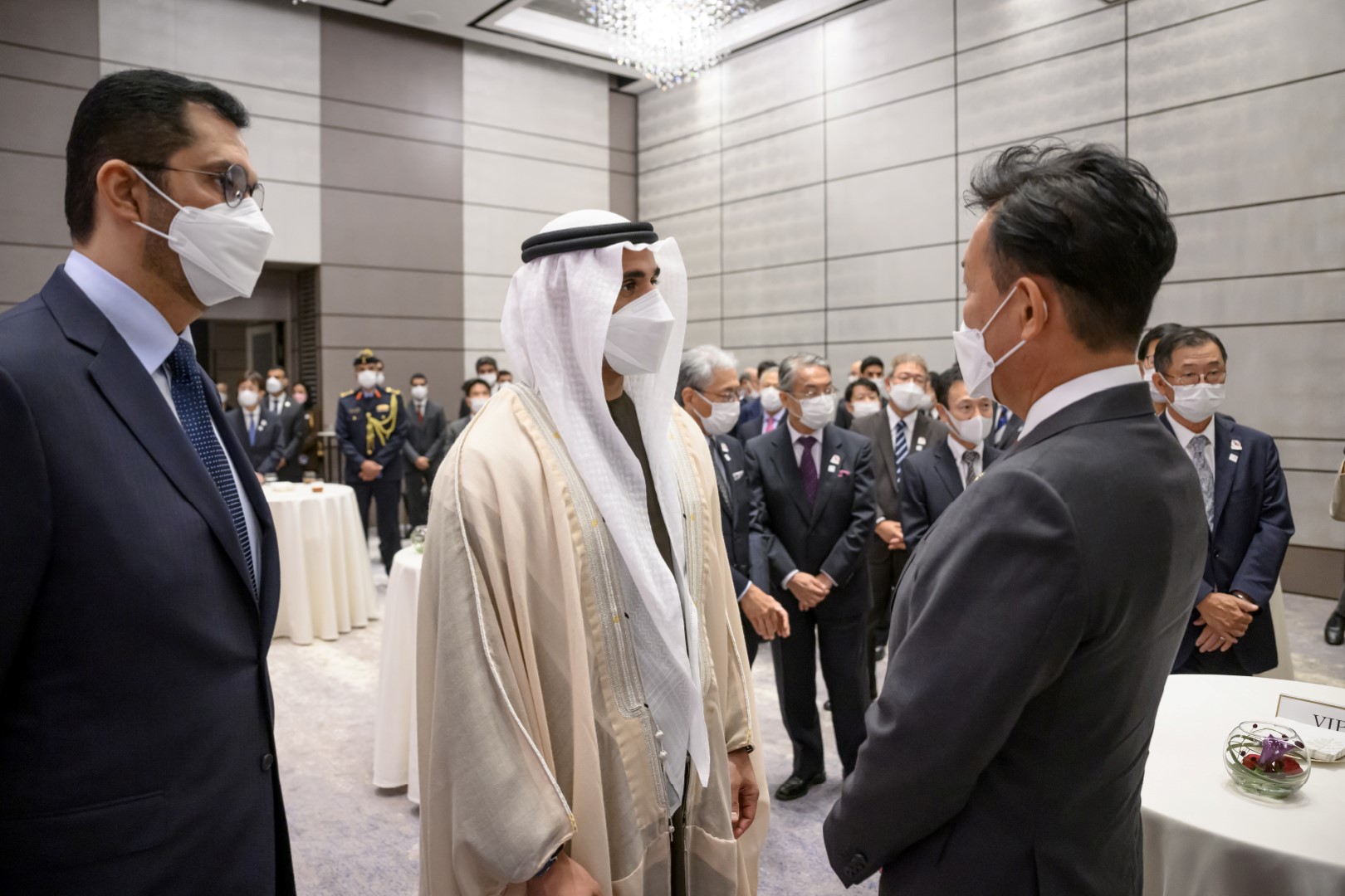 وحضر هذا الاستقبال كلّ من معالي الدكتور سلطان أحمد الجابر، وزير الصناعة والتكنولوجيا المتقدمة، مبعوث الإمارات الخاص إلى دولة اليابان، العضو المنتدب والرئيس التنفيذي لأدنوك ومجموعة شركاتها، وسعادة شهاب أحمد الفهيم، سفير الدولة لدى اليابان، وعدد من المسؤولين من وزارة الخارجية والتعاون الدولي.