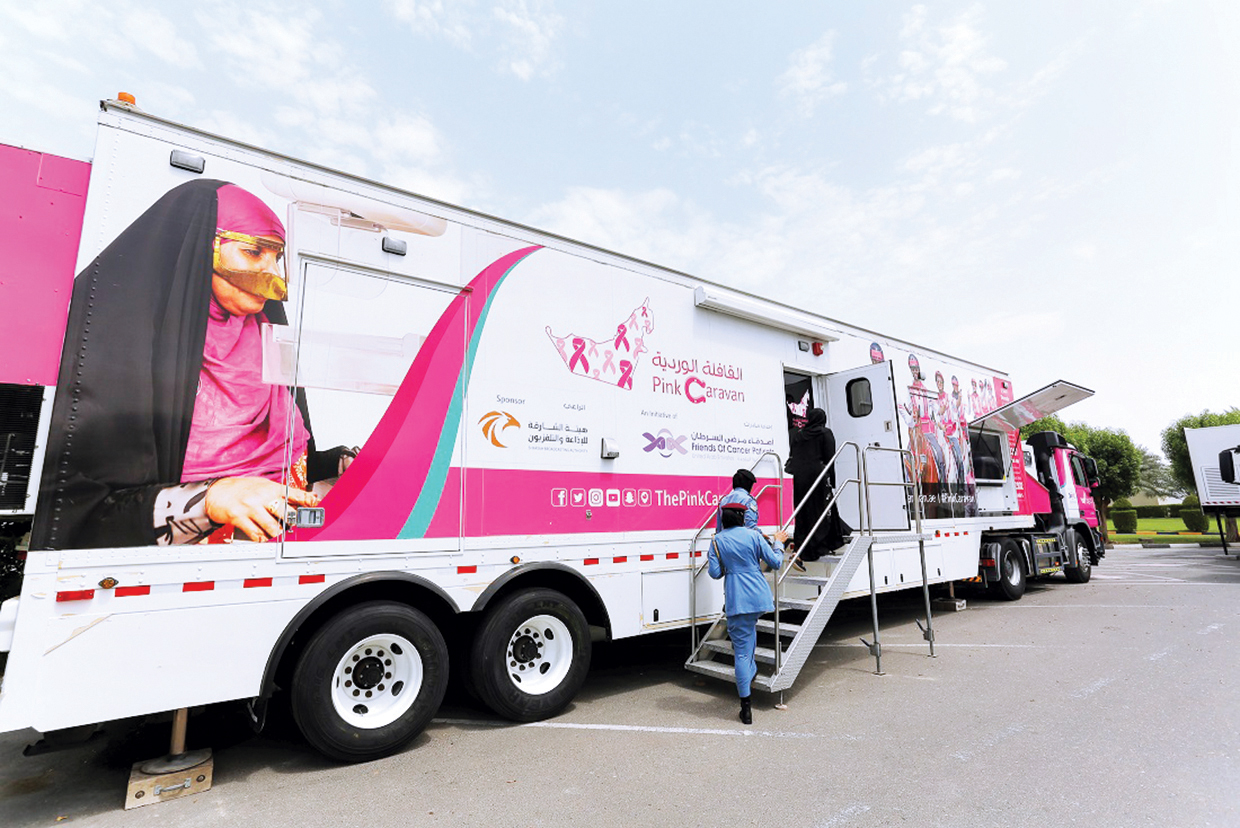 وترسل «القافلة الوردية»، إحدى مبادرات الجمعية المعنية بنشر الوعي بسرطان الثدي وأهمية الكشف المبكر عنه، عيادتها الطبية المتنقلة والمجهزة بأحدث الأدوات الطبية، وعياداتها المصغرة إلى 4 إمارات في الدولة، وتوفر للمواطنين والمقيمين فرصة فريدة للاستفادة من الفحوص والاستشارات الطبية المجانية التي تقدمها نخبة من الخبراء خلال شهر أكتوبر.