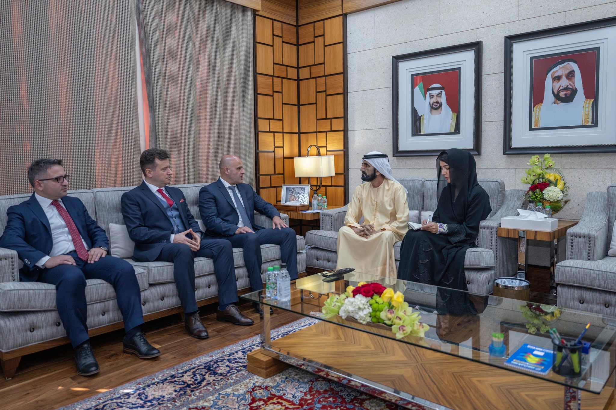 ورحب صاحب السمو نائب رئيس الدولة رئيس مجلس الوزراء حاكم دبي، رعاه الله، بمعالي رئيس وزراء جمهورية مقدونيا الشمالية، مؤكداً سموه أن دولة الإمارات تعمل دوماً على فتح قنوات جديدة مع مختلف الدول الصديقة من أجل بحث إمكانات التعاون في شتى الميادين، وبما يدعم رؤية الإمارات الرامية إلى مد جسور التعاون وتوسيع أفاقه مع مختلف دول العالم.