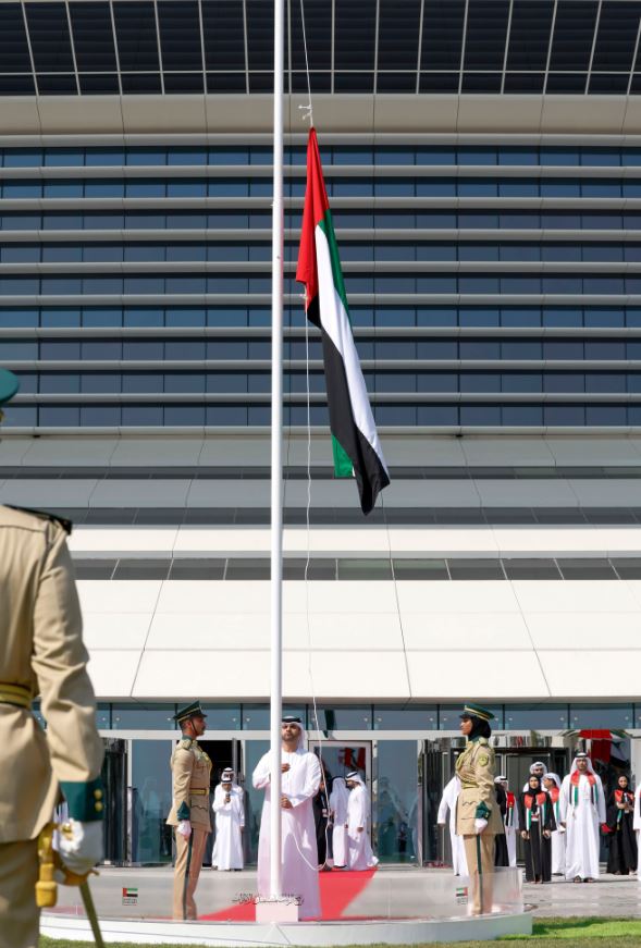 رفع سمو الشيخ منصور بن محمد بن راشد آل مكتوم، صباح اليوم (الخميس)، علم دولة الإمارات على سارية "مكتبة محمد بن راشد آل مكتوم"  في دبي، خلال الاحتفالية التي نظمتها "مؤسسة وطني الإمارات" تلبيةً لدعوة صاحب السمو الشيخ محمد بن راشد آل مكتوم، نائب رئيس الدولة رئيس مجلس الوزراء حاكم دبي، رعاه الله"، للاحتفال بـ "يوم العلم" الذي تحتفي فيه دولة الإمارات قيادة وشعباً برمز دولة الاتحاد، والقيم التي أرساها الآباء المؤسسون كضمانة تكفل للإمارات وشعبها المعطاء أسباب التقدم والازدهار.