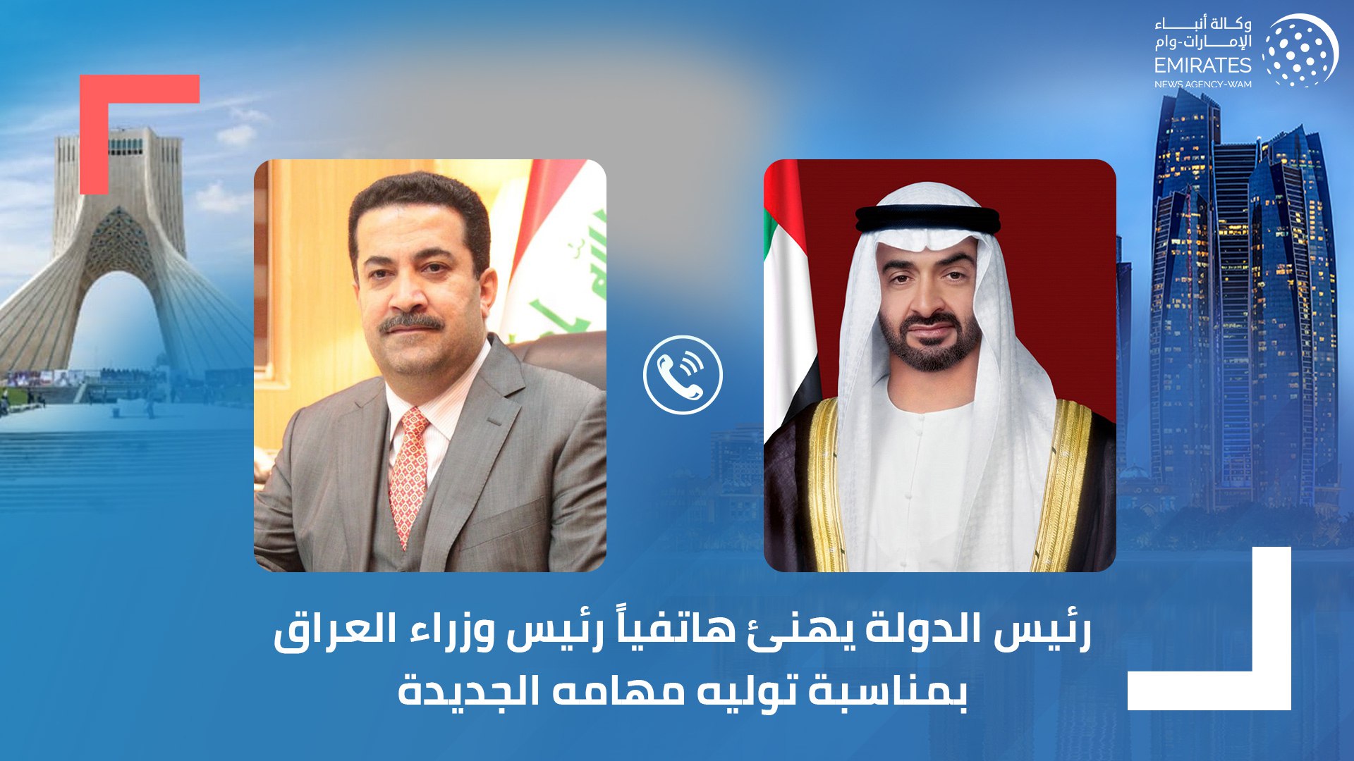 وأعرب سموه خلال الاتصال الهاتفي عن خالص تمنياته لرئيس الحكومة العراقية بالتوفيق والنجاح في مهامه الجديدة.. مؤكداً دعم دولة الإمارات لكل ما يحقق الوفاق والاستقرار في العراق الشقيق ويلبي تطلعات شعبه إلى التقدم والازدهار.