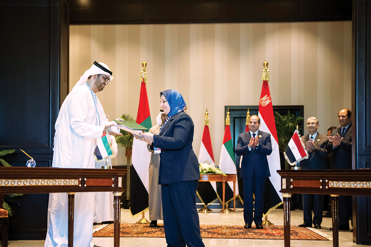 وقع الاتفاقية معالي الدكتور سلطان بن أحمد الجابر وزير الصناعة والتكنولوجيا المتقدمة المبعوث الخاص لدولة الإمارات للتغير المناخي رئيس مجلس إدارة «مصدر»، وصباح محمد مشالي رئيس مجلس الإدارة العضو المنتدب للشركة المصرية لنقل الكهرباء، وذلك على هامش أعمال الدورة السابعة والعشرين لمؤتمر الأطراف في اتفاقية الأمم المتحدة الإطارية بشأن تغير المناخ (COP27) التي تستضيفه مدينة مدينة شرم الشيخ.