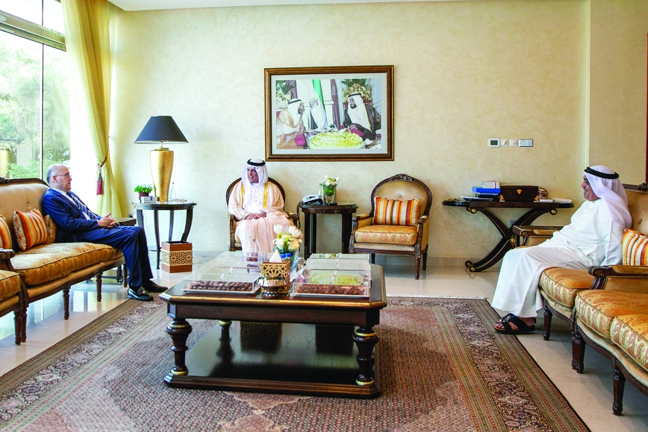 ورحب صاحب السمو حاكم رأس الخيمة، بالسفير، وتبادل معه الأحاديث بشأن تعزيز علاقات التعاون بين البلدين الصديقين في مختلف الصعد.