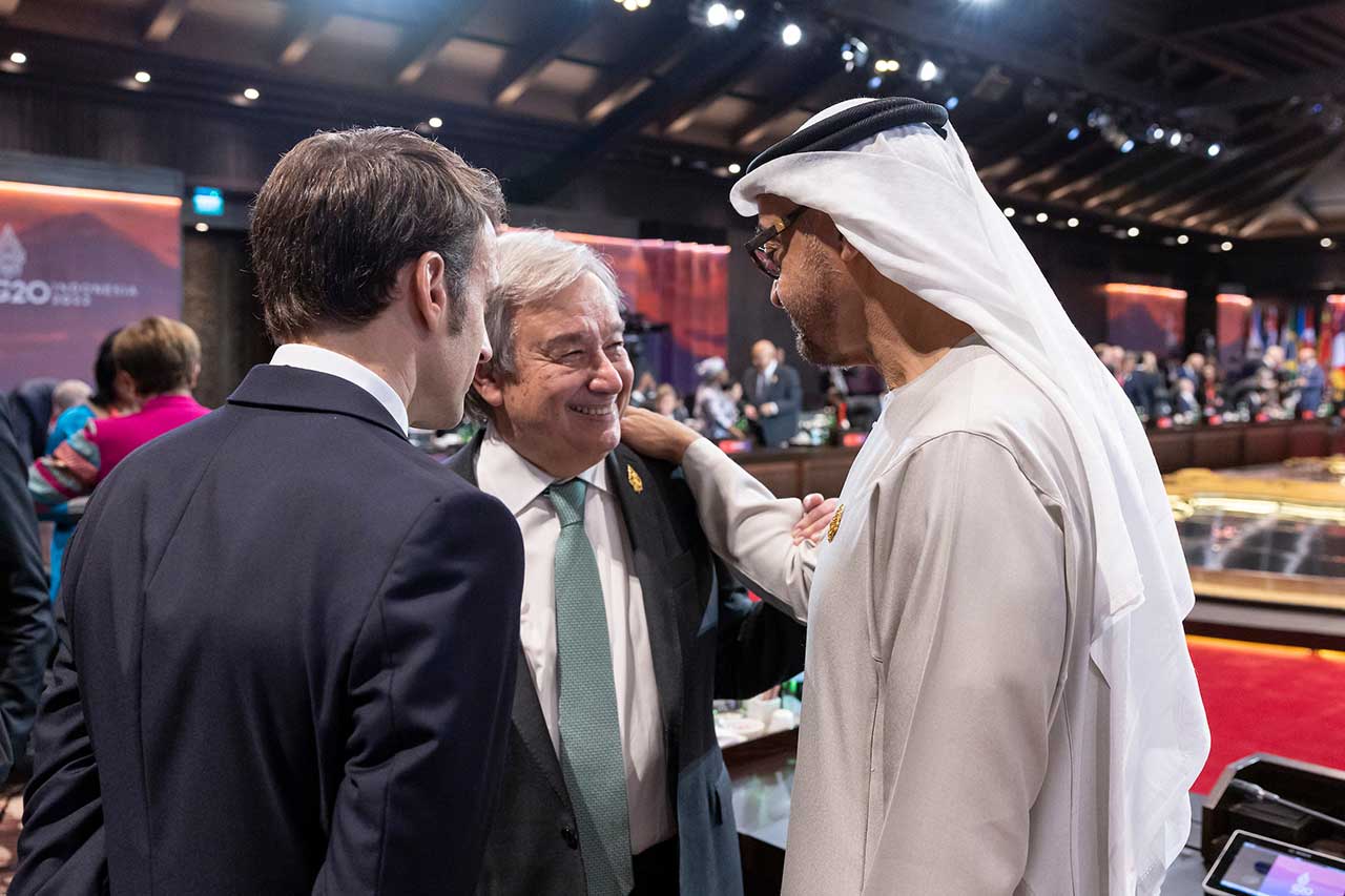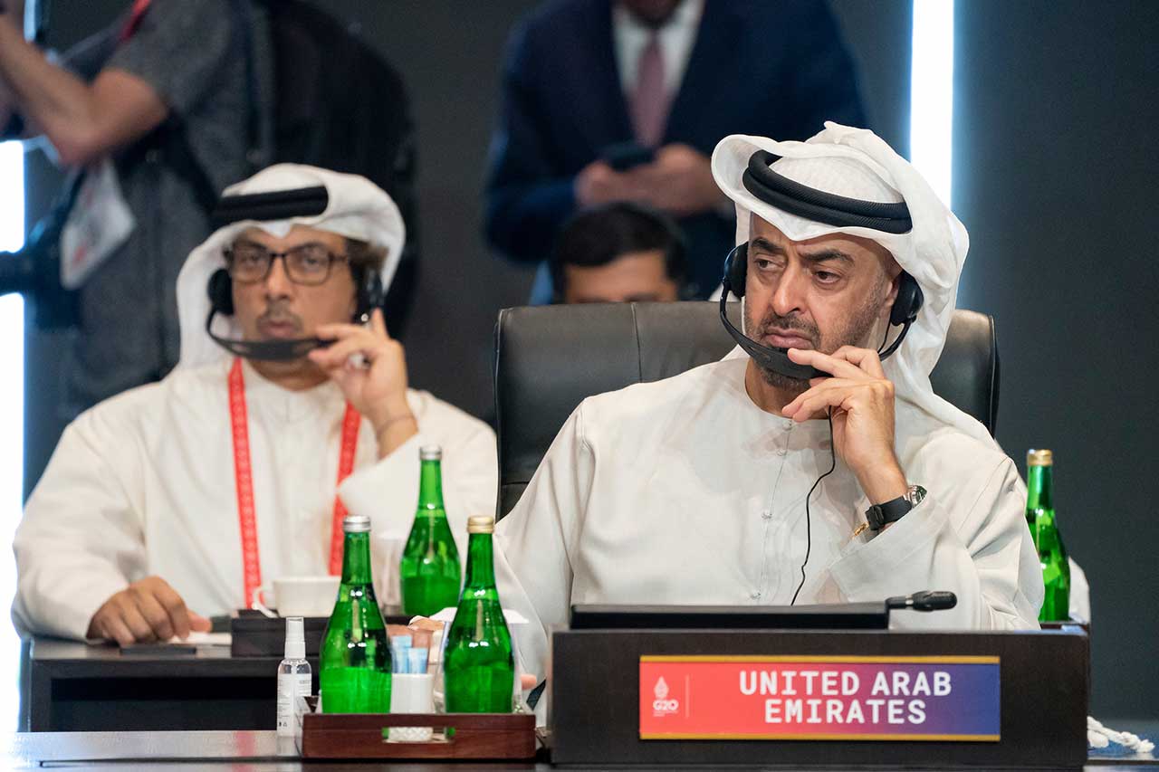 واستهل صاحب السمو رئيس الدولة كلمته في القمة.. بتوجيه الشكر إلى الرئاسة الإندونیسیة لجھودھا الكبیرة في قیادة أعمال مجموعة العشرین وتنسيقها.. متمنياً التوفيق والنجاح لجمهورية الهند الصديقة في رئاسة المجموعة خلال العام المقبل.