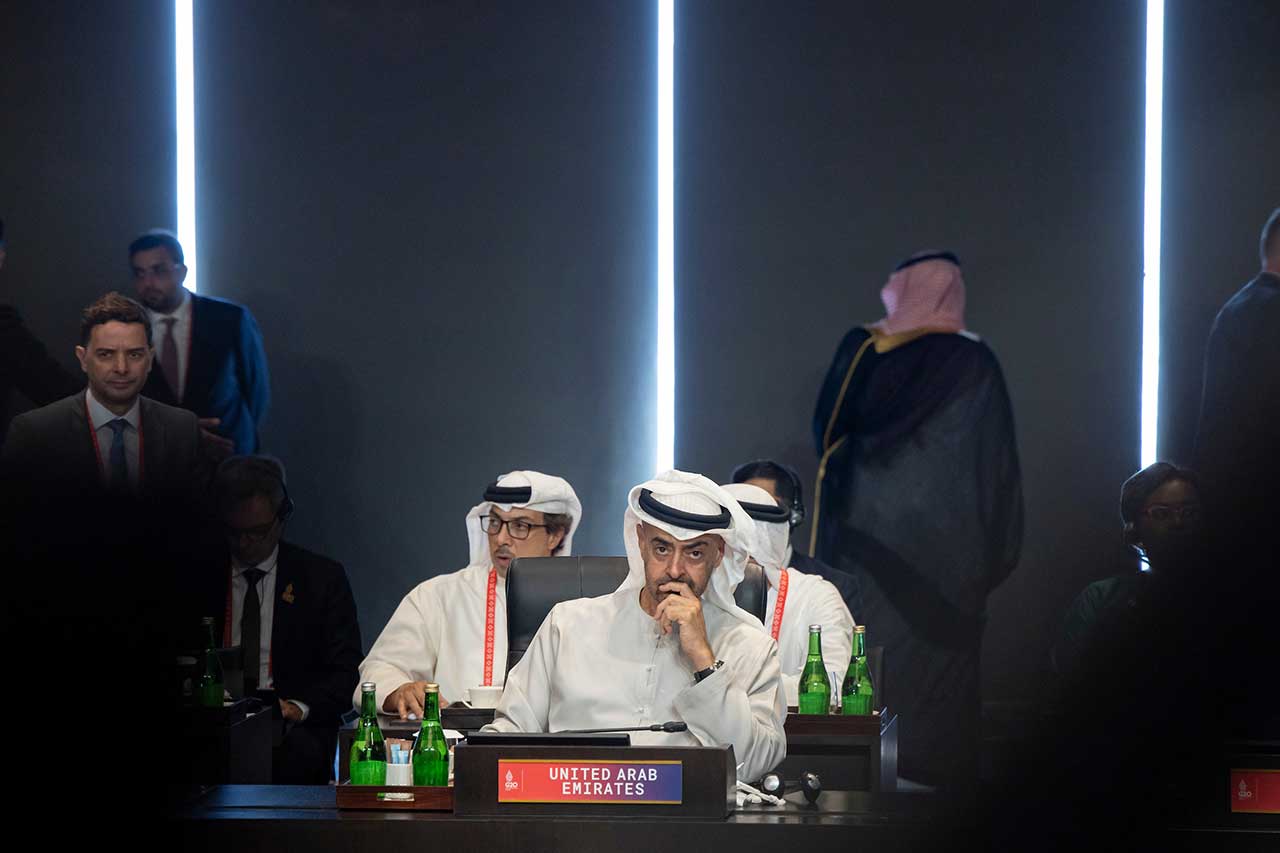 وضم الوفد الرسمي المشارك مع صاحب السمو رئيس الدولة في القمة كلاً من.. سمو الشيخ منصور بن زايد آل نهيان نائب رئيس مجلس الوزراء وزير ديوان الرئاسة وسمو الشيخ عبدالله بن زايد آل نهيان وزير الخارجية والتعاون الدولي و معالي سهيل بن محمد فرج فارس المزروعي وزير الطاقة والبنية التحتية.
