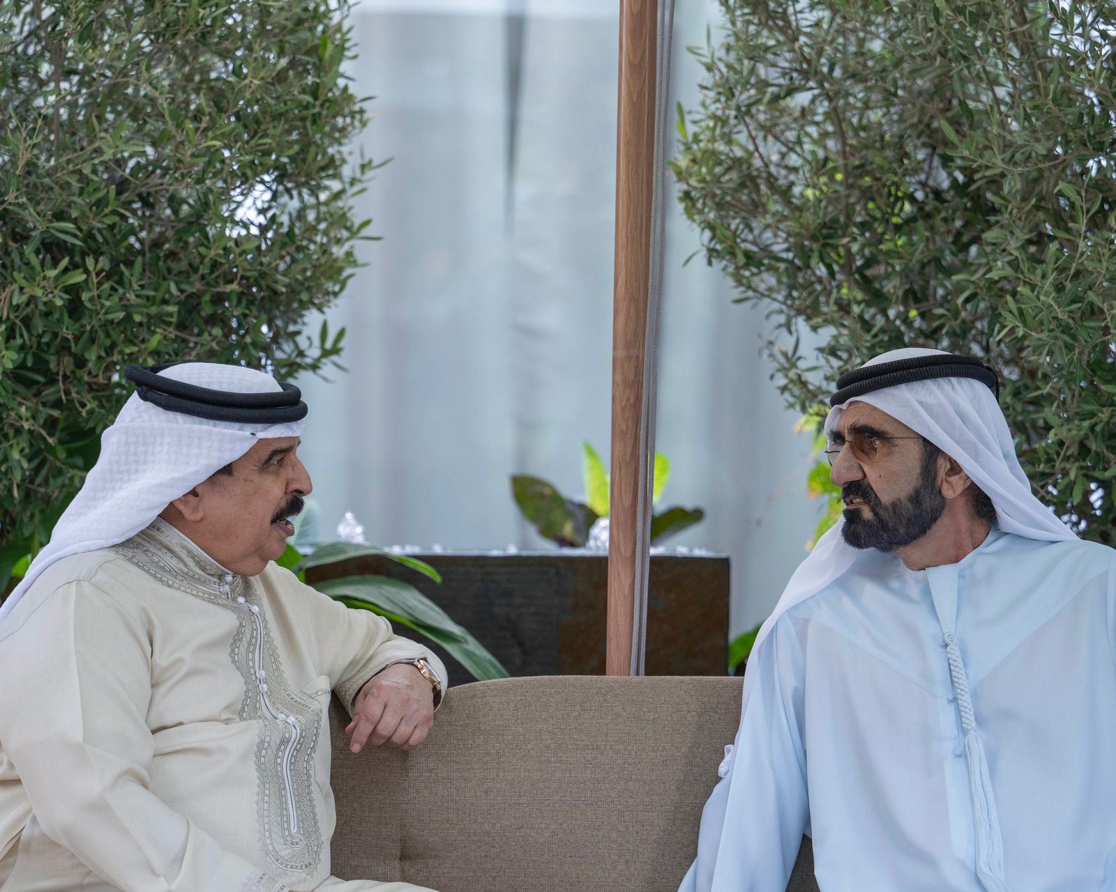 التقى صاحب السمو الشيخ محمد بن راشد آل مكتوم نائب رئيس الدولة رئيس مجلس الوزراء حاكم دبي "رعاه الله" اليوم أخاه صاحب الجلالة الملك حمد بن عيسى آل خليفة ملك مملكة البحرين الشقيقة، بحضور سمو الشيخ حمدان بن محمد بن راشد آل مكتوم، ولي عهد دبي رئيس المجلس التنفيذي، وسمو الشيخ مكتوم بن محمد بن راشد آل مكتوم نائب حاكم دبي نائب رئيس مجلس الوزراء وزير المالية، في استراحة المرموم في دبي.