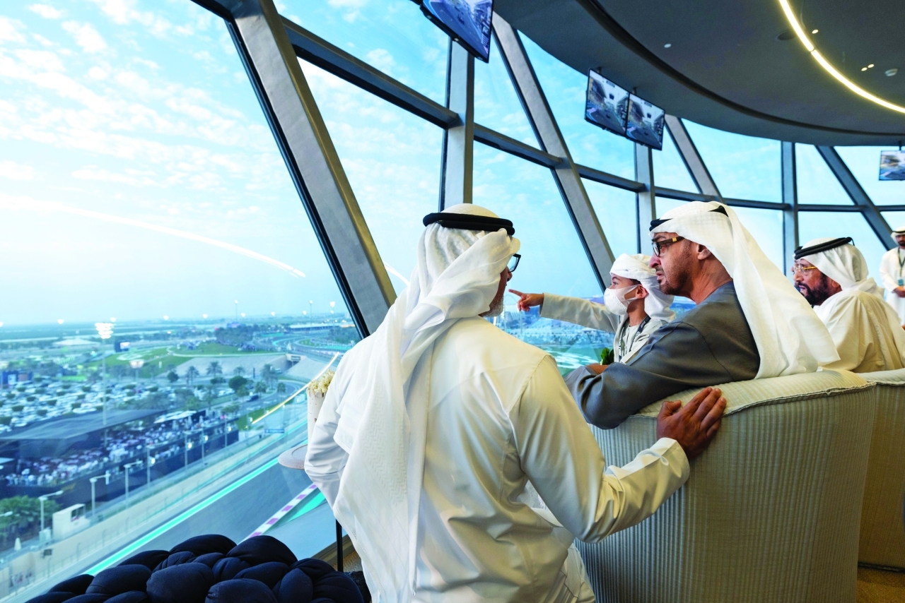 شهد صاحب السمو الشيخ محمد بن زايد آل نهيان رئيس الدولة «حفظه الله»، أمس، منافسات الجولة الختامية لبطولة العالم للفورمولا1 «جائزة الاتحاد للطيران الكبرى للفورمولا 1 لموسم 2022»، التي تقام على حلبة مرسى ياس في أبوظبي، وذلك بحضور سمو الشيوخ، ورؤساء الوفود المدعوين من الدول الشقيقة والصديقة ضيوف الدولة، وهنأ سموه جميع محبي رياضة سباقات السيارات في العالم، بنجاح اختتام البطولة، والمنافسات التي جرت لنيل لقبها، وشكر سموه جهود منظمي الجولة الختامية للبطولة.. معرباً عن تقديره لدور جميع الشركاء في إنجاح استضافة الدولة لهذا الحدث الرياضي العالمي.