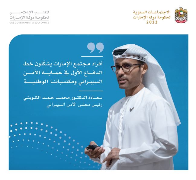 جاء ذلك خلال جلسة حول العمل الحكومي وتحديات الأمن السيبراني، ضمن أعمال الاجتماعات السنوية لحكومة دولة الإمارات 2022.