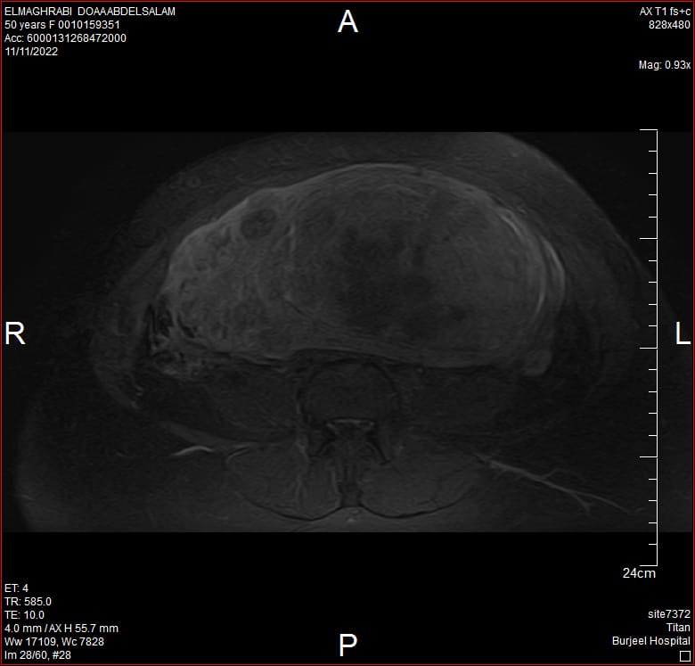 وتابعت أن الإجراء الجراحي في حالات الأورام الليفية الحميدة يتم إجراء لاستئصال تلك الأورام بسهولة، ولكن في حالة هذه السيدة كان استئصال الأورام والرحم ضرورة حتمية خاصة أنها تجاوزت سن الإنجاب حيث أظهرت الإشاعات المختلفة أن الأورام متداخلة مع الرحم بنسبة كبيرة، مشيرة إلى أنه يراعى عند الاستعداد للجراحة عدة عوامل تأخذ بعين الاعتبار وهي التوقيت المناسب بحيث يتم الإجراء الجراحي بعد انقضاء الدورية الشهرية وربط الشريان الرحمي لعدم فقدان كمية كبيرة من الدم وإجراء فتحة صغيرة لاتتجاوز 5 سنتيمتر أسفل البطن تحت التخدير الكامل.