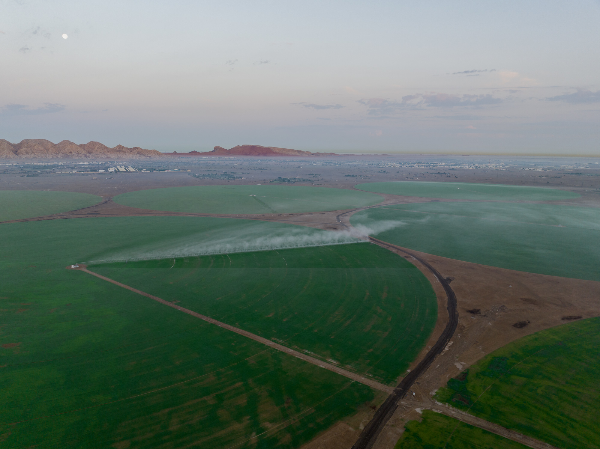 كما تفقد صاحب السمو حاكم الشارقة محطة تجميع مياه الري الخاصة بالمزرعة، واطلع سموه على المواصفات الفنية للمحطة وآلية عملها كمزود تغذية رئيس لري مزرعة القمح عبر 6 مضخات سحب كبيرة، لتزويد المحاور بالمياه، بطاقة تصل إلى 60 ألف متر مكعب من المياه على مدار ساعات اليوم، ويتم نقل المياه من محطة حمدة على خط ناقل طوله 13 كيلومتراً وصولاً إلى المزرعة.