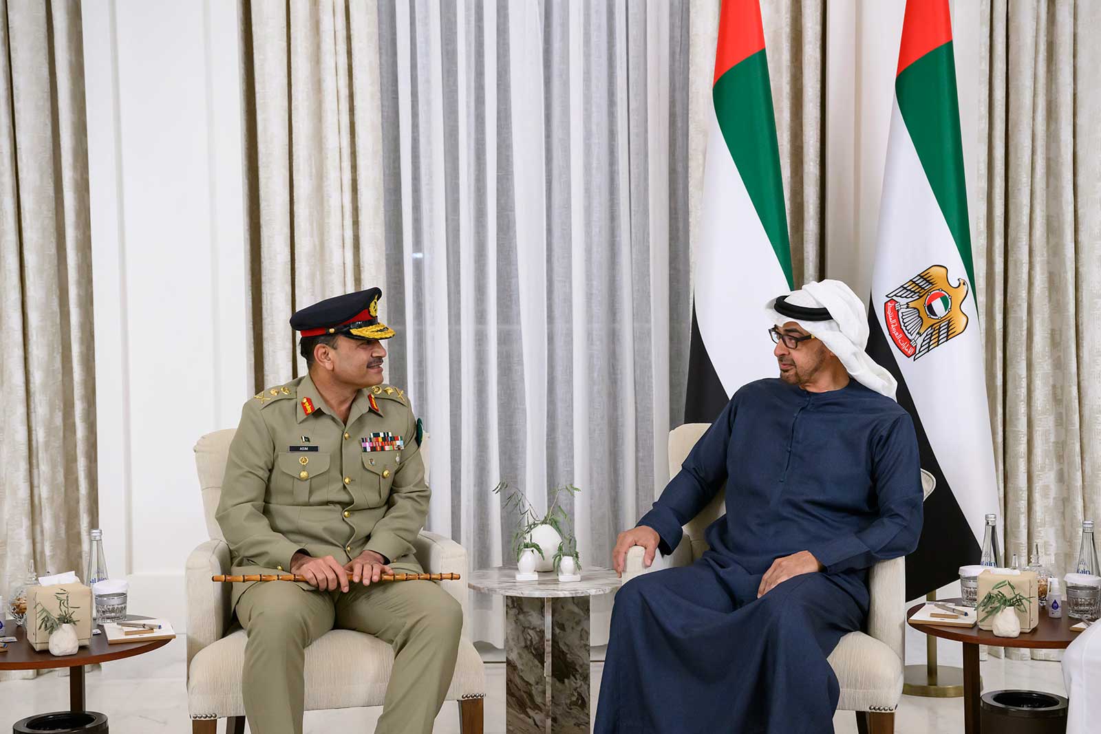 استقبل صاحب السمو الشيخ محمد بن زايد آل نهيان، رئيس الدولة، حفظه الله، اليوم، الفريق أول عاصم منير، قائد الجيش في جمهورية باكستان الإسلامية الصديقة.