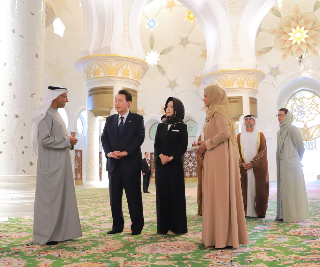 زار فخامة يون سيوك يول رئيس جمهورية كوريا، اليوم جامع الشيخ زايد الكبير، ترافقه حرمه السيدة الأولى كيم كيون هي، يرافقهما معالي سهيل بن محمد فرج فارس المزروعي وزير الطاقة والبنية التحتية ومعالي نورة بنت محمد الكعبي وزيرة الثقافة والشباب، وسعادة عبدالله النعيمي سفير الدولة لدى كوريا، وعدد من كبار المسؤولين في كوريا الجنوبية وذلك ضمن زيارته الرسمية للدولة.
