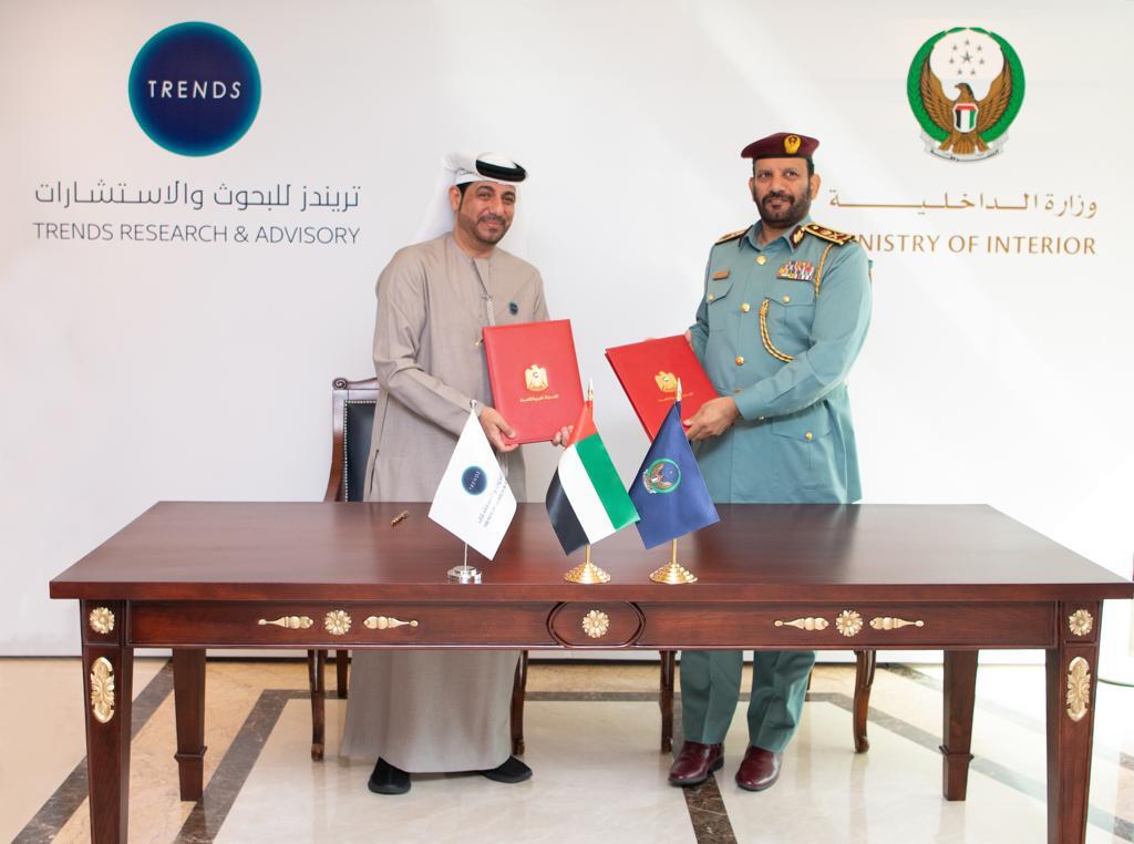 وقع مذكرة التفاهم من جانب وزارة الداخلية اللواء سالم علي مبارك الشامسي الوكيل المساعد للموارد والخدمات المساندة، وعن مركز "تريندز" الدكتور محمد عبد الله العلي الرئيس التنفيذي للمركز.