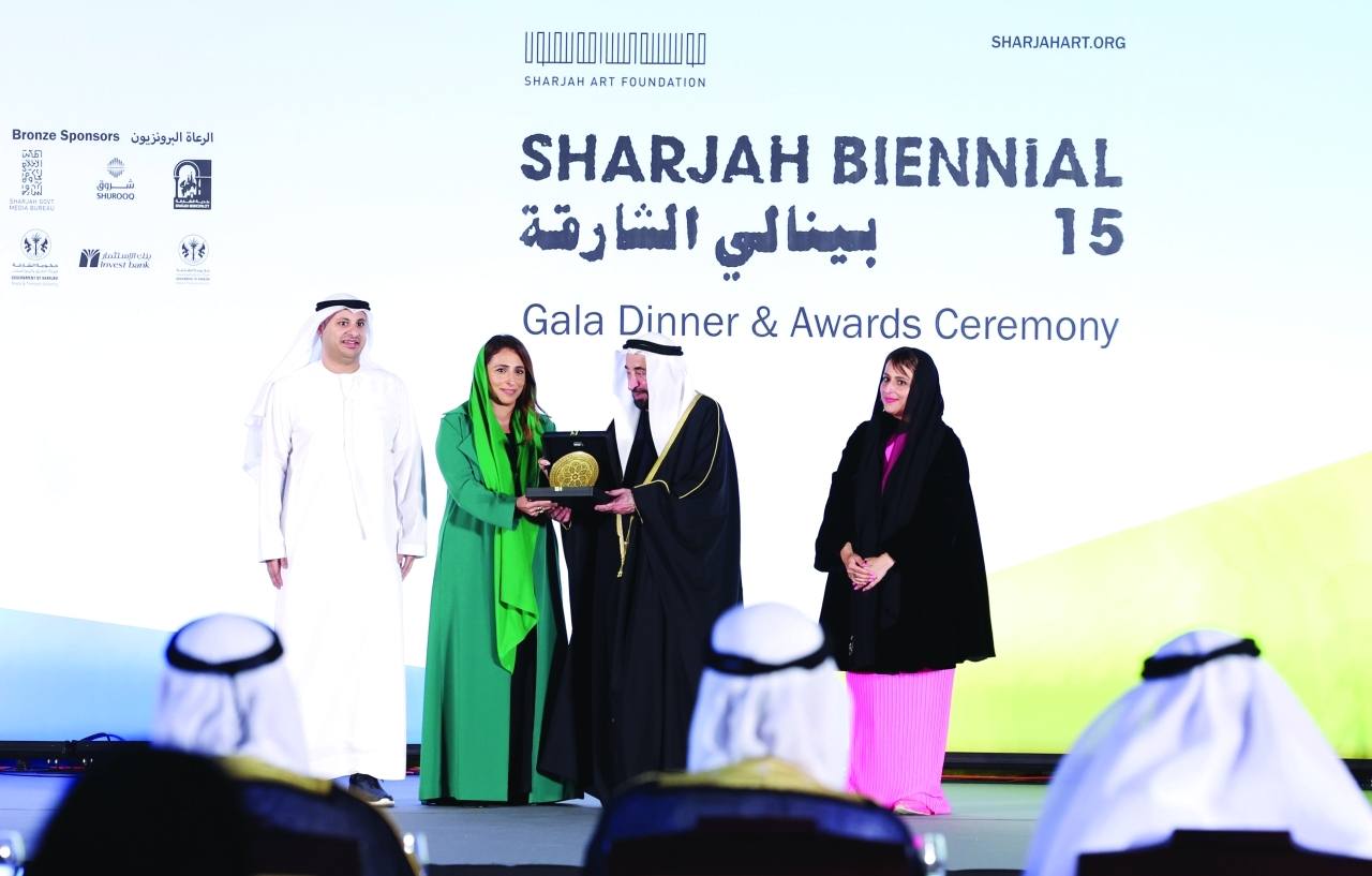 وتفضل صاحب السمو حاكم الشارقة بتكريم الفائزين في البينالي وهم بشرى خليلي عن عملها (الدائرة)، ودوريس سالسيدو عن عملها (مُجتث)، وهجرة وحيد عن عملها (ترنيمة 2)، إضافة إلى جوائز الإشادة الشرفية التي تم منحها إلى الفنانين لي كاي تشونغ، وتانيا الخوري، وغابرييلا جولدار، وأمار كانوار، وجويري مينايا، وفارونيكا صراف، كما تفضل سموه بتكريم الرعاة للدورة الخامسة عشرة، ملتقطاً سموه معهم الصور الجماعية.