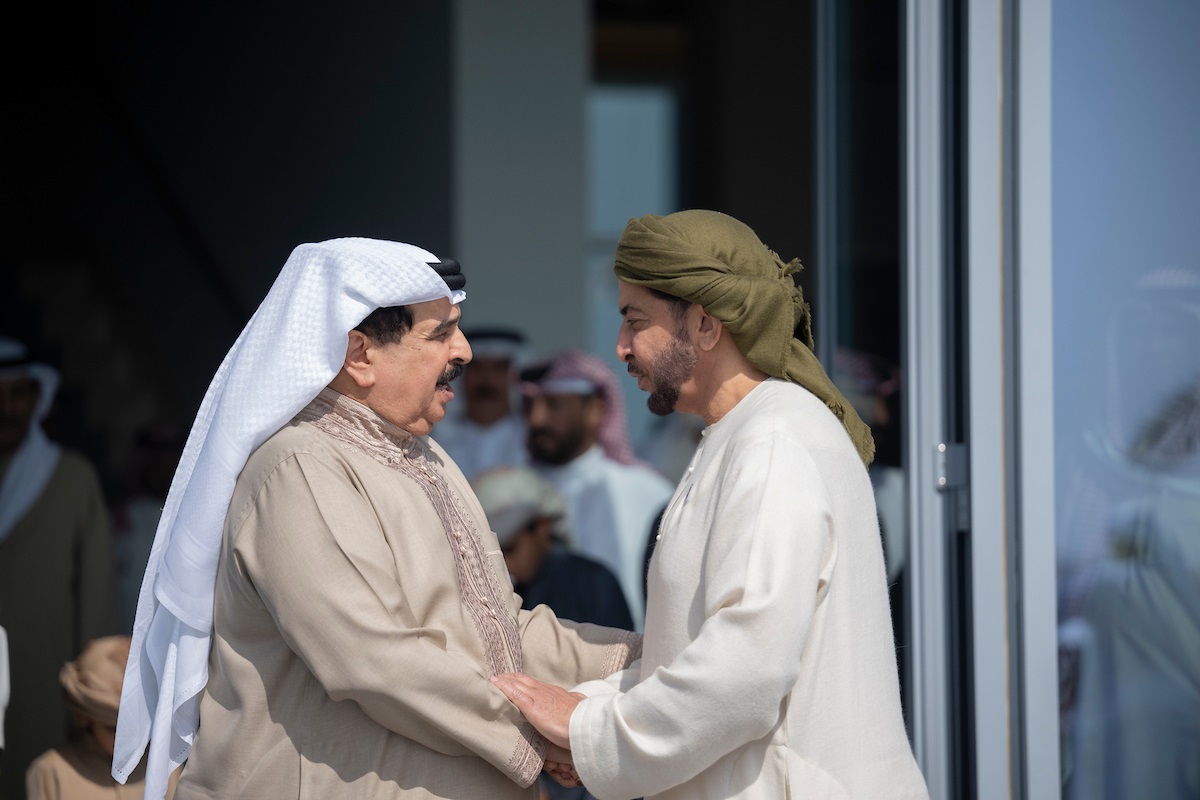 وتبادل صاحب السمو الشيخ محمد بن زايد آل نهيان مع أخيه جلالة الملك حمد بن عيسى آل خليفة خلال اللقاء .. الأحاديث الأخوية الودية التي تعبر عما يربط البلدين وقيادتيهما وشعبيهما من أواصر أخوية متينة وراسخة سائلين المولى عز وجل أن يديم على البلدين تقدمهما واستقرار هما وازدهارهما.