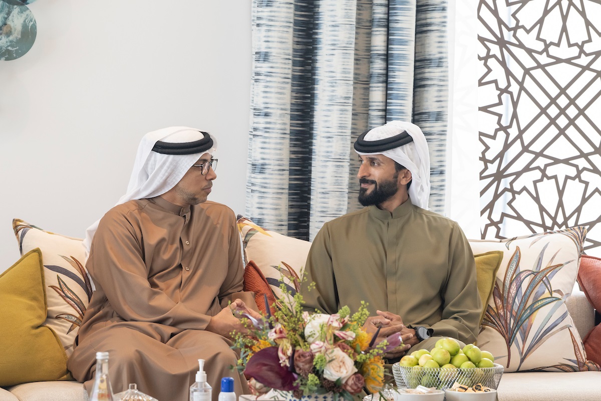 حضر اللقاء..سمو الشيخ حمدان بن زايد آل نهيان ممثل الحاكم في منطقة الظفرة وسمو الشيخ منصور بن زايد آل نهيان نائب رئيس مجلس الوزراء وزير ديوان الرئاسة ومعالي الشيخ محمد بن حمد بن طحنون آل نهيان مستشار الشؤون الخاصة في ديوان الرئاسة.