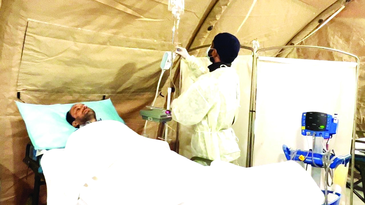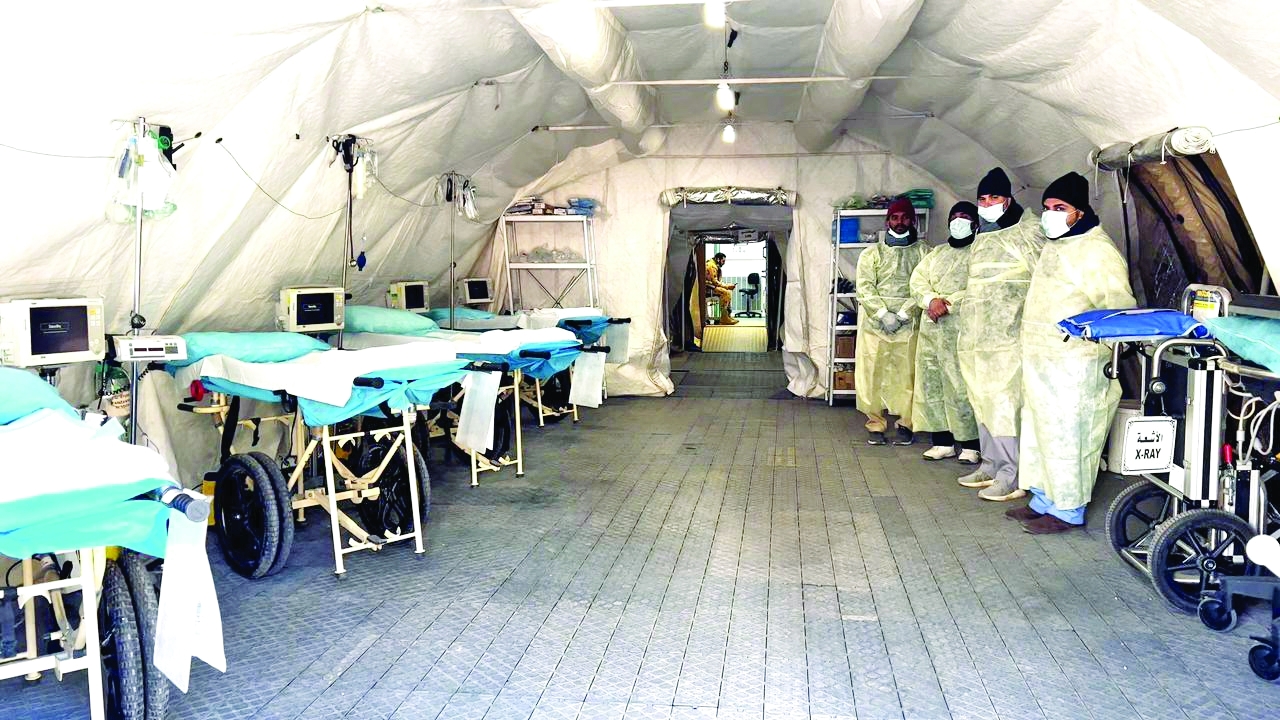 وبذل الفريق المشرف على المستشفى الميداني جهوداً استثنائية في إنشاء المستشفى في زمن قياسي وتوفير الكوادر الطبية من مختلف التخصصات الطبية، حيث يضم المستشفى 15 طبيباً من مختلف التخصصات و60 ممرضاً ومساعداً فنياً إضافة إلى متخصصين في الجانب النفسي لاستقبال الأشخاص الذين يعانون من مختلف الحالات النفسية كالقلق ونوبات الاكتئاب واضطرابات ما بعد الصدمة نتيجة الكارثة.