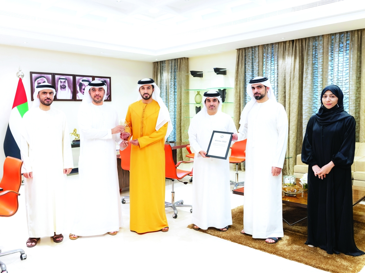 وكرم الشيخ راشد بن حميد النعيمي رئيس الدائرة، بحضور عبدالرحمن محمد النعيمي المدير العام للدائرة، وخالد أحمد الحوسني المدير التنفيذي لقطاع الخدمات المساندة بالدائرة، فريق العمل، الذي ترأسه عبدالرؤوف محمود إسماعيل مدير إدارة الشؤون المالية بالدائرة.