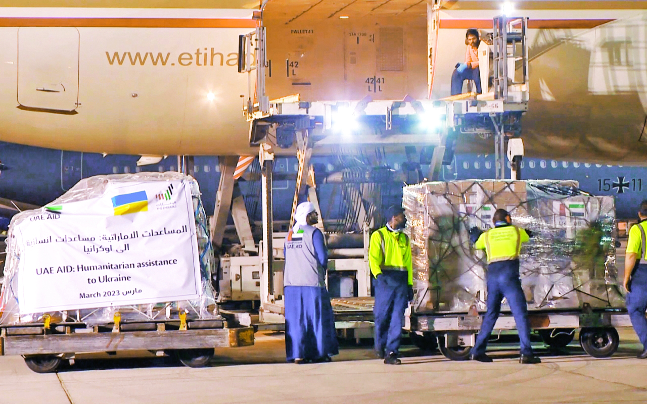 وتجدر الإشارة إلى أنه منذ بداية الأزمة قدمت دولة الإمارات إمدادات إغاثية عاجلة للمتضررين من الأزمة في أوكرانيا، ففي أكتوبر من العام الماضي تم الإعلان عن تقديم 100 مليون دولار أمريكي إلى المدنيين الأوكرانيين، كما دشنت دولة الإمارات جسراً جوياً تضمن إرسال 11 طائرة تحمل نحو 550 طناً من الإمدادات الإغاثية والمواد الغذائية الأساسية والطبية، و2520 مولداً كهربائياً و6 سيارات إسعاف، منها طائرتان من المدينة العالمية للخدمات الإنسانية بدبي، إلى المدنيين داخل أوكرانيا، فضلاً عن تسييرها طائرات تحمل إمدادات إغاثية للاجئين الأوكرانيين في دول الجوار مثل بولندا ومولدوفا وبلغاريا.