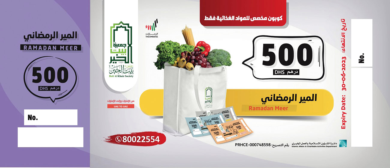 وبإمكان الأسرة المستفيدة سحب احتياجاتها الغذائية الرمضانية على مراحل من رصيد حساب المير المقرر لها، ولمدة كافية تصل إلى ما بعد رمضان، كما سيتم تسليم بعض الأسر قسائم المير، لتصرفها من الجمعيات التي تعاقدت معها «بيت الخير».