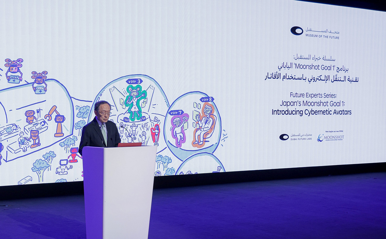 من جهته استعرض البروفيسور نوريهيرو هاجيتا من جامعة أوساكا للفنون في الجلسة الأولى أبرز أهداف برنامج (Moonshot Goal 1) والذي يتضمن 7 مشاريع بحثية متنوعة تركز على تطوير مجموعة متنوعة من الصور الرمزية السيبرانية (Cybernetic Avatars) لتمكين الأفراد من المشاركة الصحيحة في تنمية مجتمعاتهم مع مراعاة الجوانب الأخلاقية والاقتصادية والبيئية والقانونية والاجتماعية.