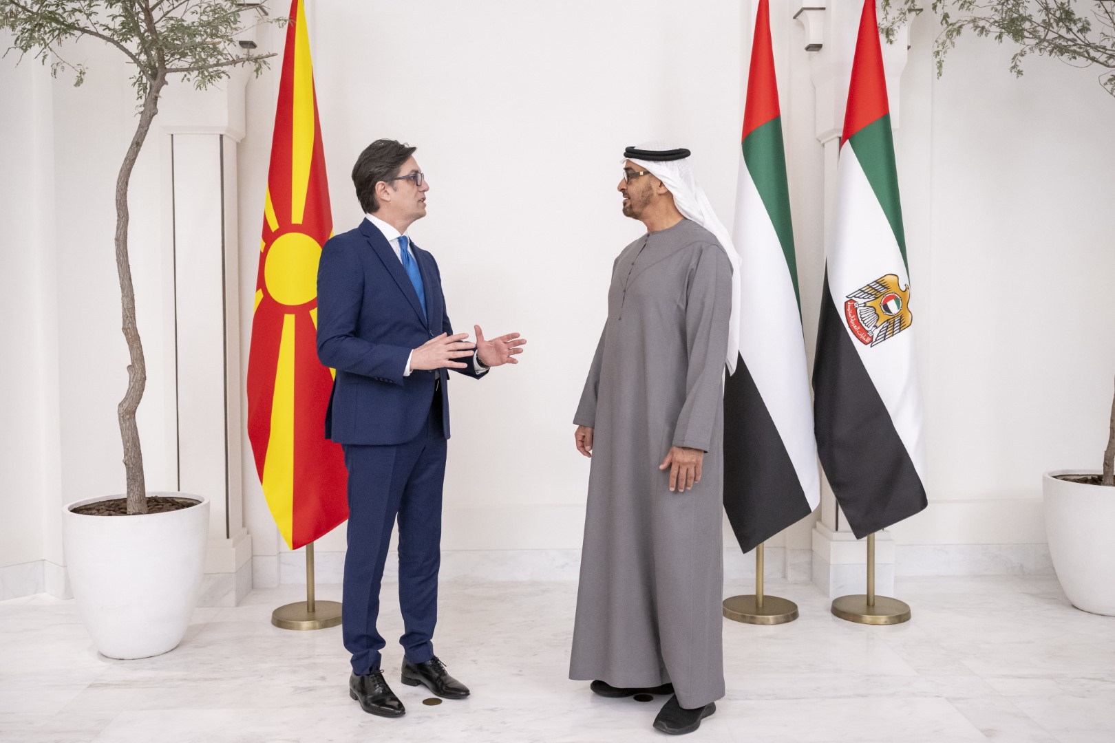 استقبل صاحب السمو الشيخ محمد بن زايد آل نهيان رئيس الدولة "حفظه الله" اليوم فخامة ستيفو بنداروفيسكي رئيس جمهورية مقدونيا الشمالية الصديقة الذي يقوم بزيارة عمل إلى الدولة.