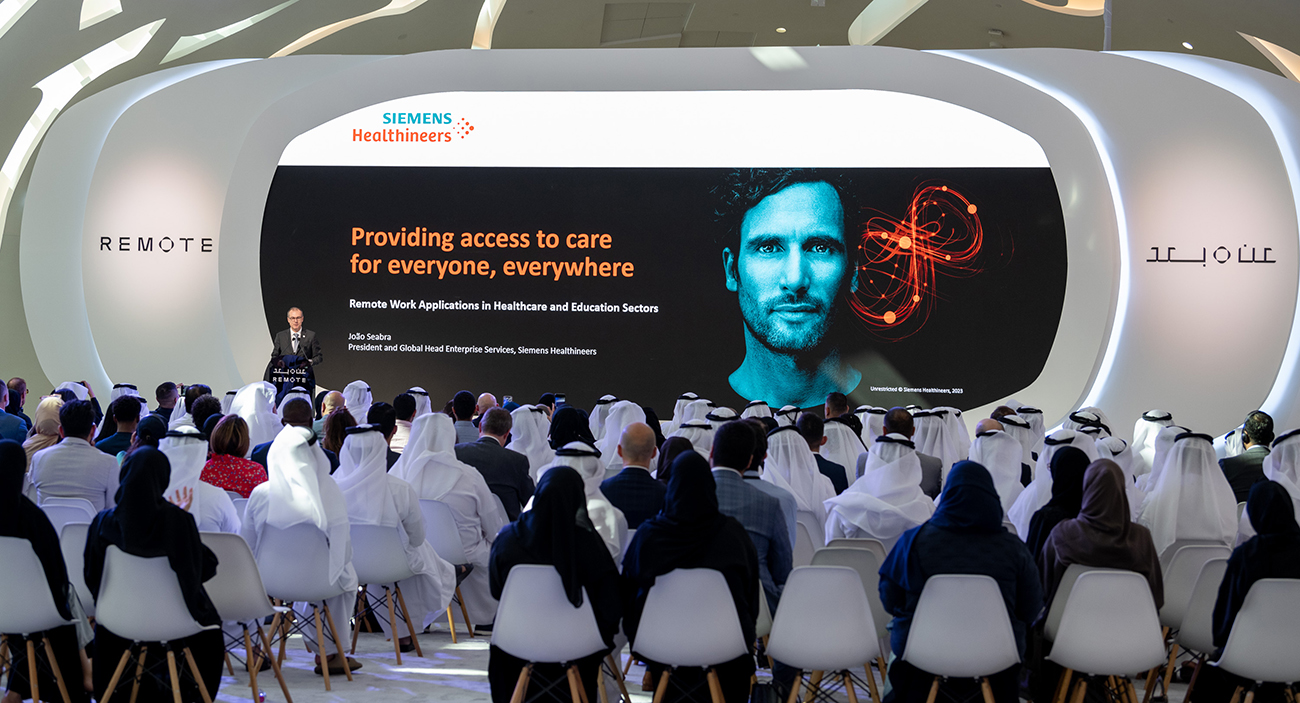بحث منتدى «عن بُعد»، الذي نظمه مكتب الذكاء الاصطناعي والاقتصاد الرقمي وتطبيقات العمل عن بُعد في حكومة دولة الإمارات، دور التكنولوجيا في تسهيل وصول أفراد المجتمع إلى خدمات الرعاية الصحية، ضمن جلسة بعنوان «توفير الرعاية الصحية لكل الأفراد في كل مكان»، تحدث فيها جواو سيابرا رئيس خدمات المشاريع العالمية في «سيمنز هيلثنيرز».