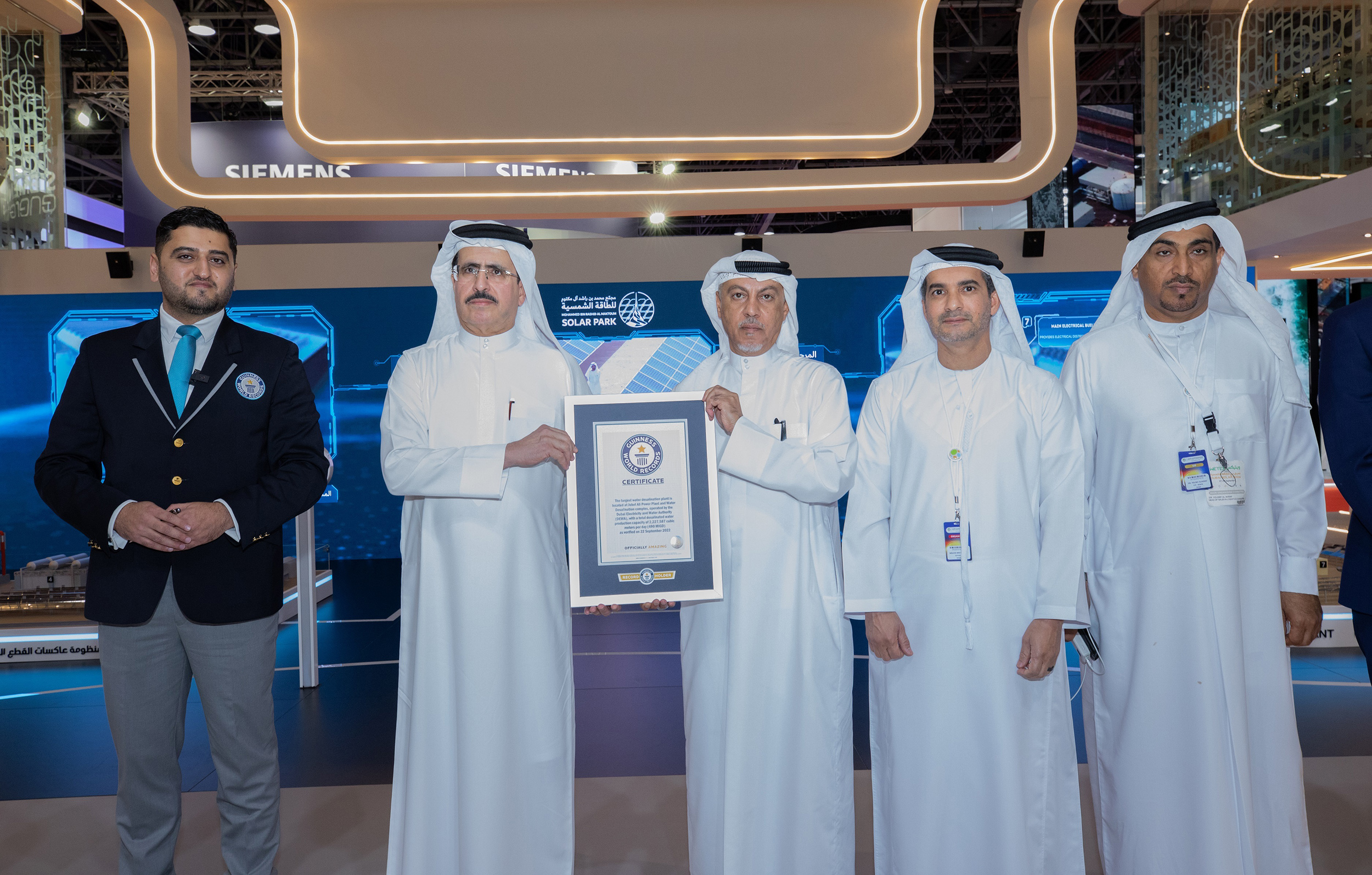 كما سجلت الهيئة سبقاً جديداً بدخولها موسوعة غينيس للأرقام القياسية عن أكبر منشأة لتحلية المياه في موقع واحد في العالم بقدرة إنتاجية 490 مليون جالون من المياه المحلاة يومياً، أي ما يعادل 2227587 مترا مكعبا يومياً، في مجمع محطات جبل علي لإنتاج الطاقة وتحلية المياه.