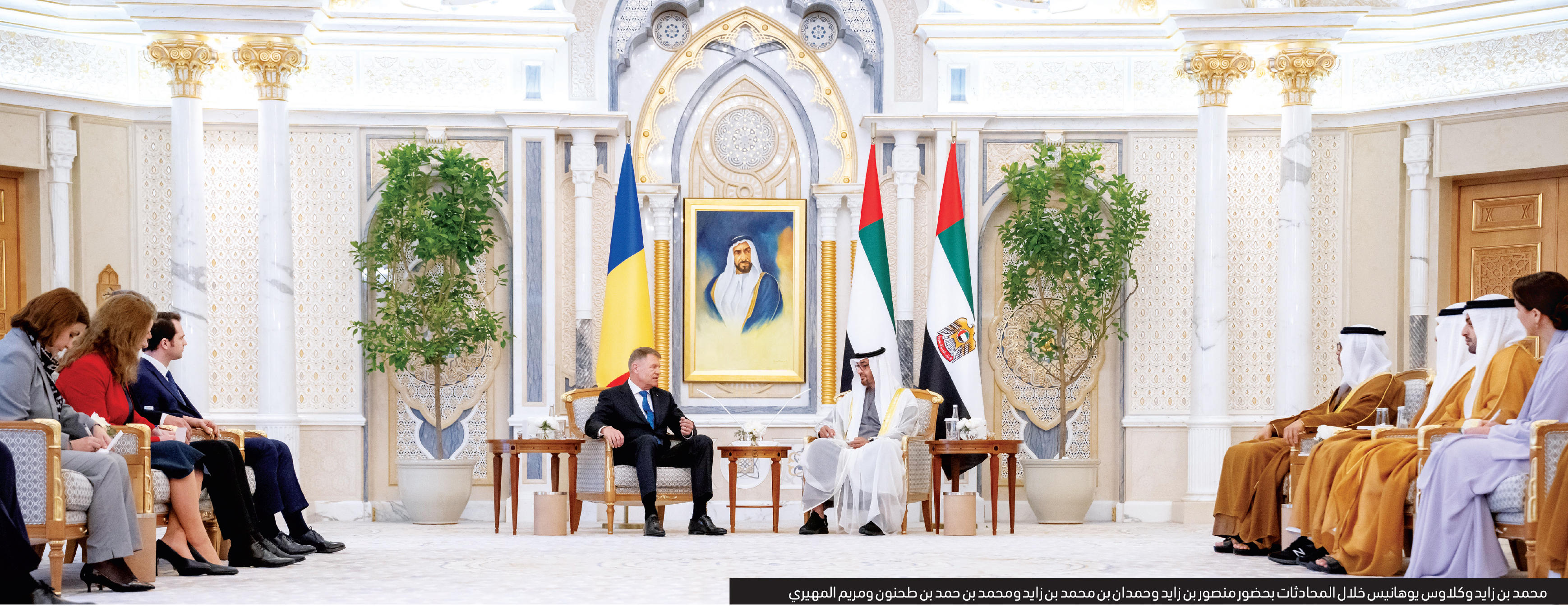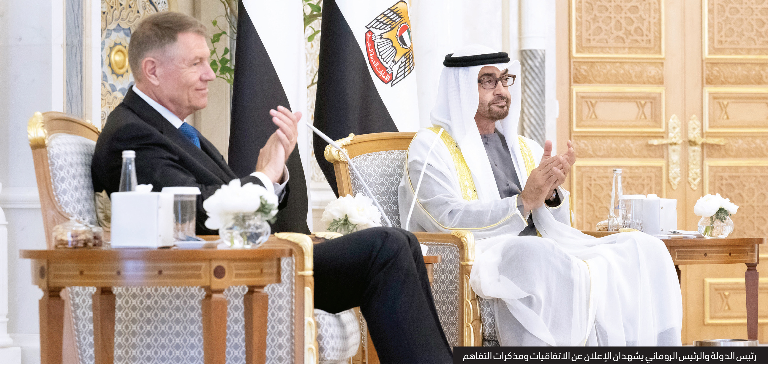 وبحث صاحب السمو رئيس الدولة، ورئيس رومانيا، الفرص الواعدة لتنمية آفاق التعاون في القطاعات ذات الأولوية التنموية لدى البلدين وخاصة الاقتصادية والتجارية والطاقة المتجددة والاستدامة والأمن الغذائي وغيرها من المجالات بما يسهم في فتح مسارات جديدة للتعاون تدعم الاستثمارات المتبادلة في البلدين.