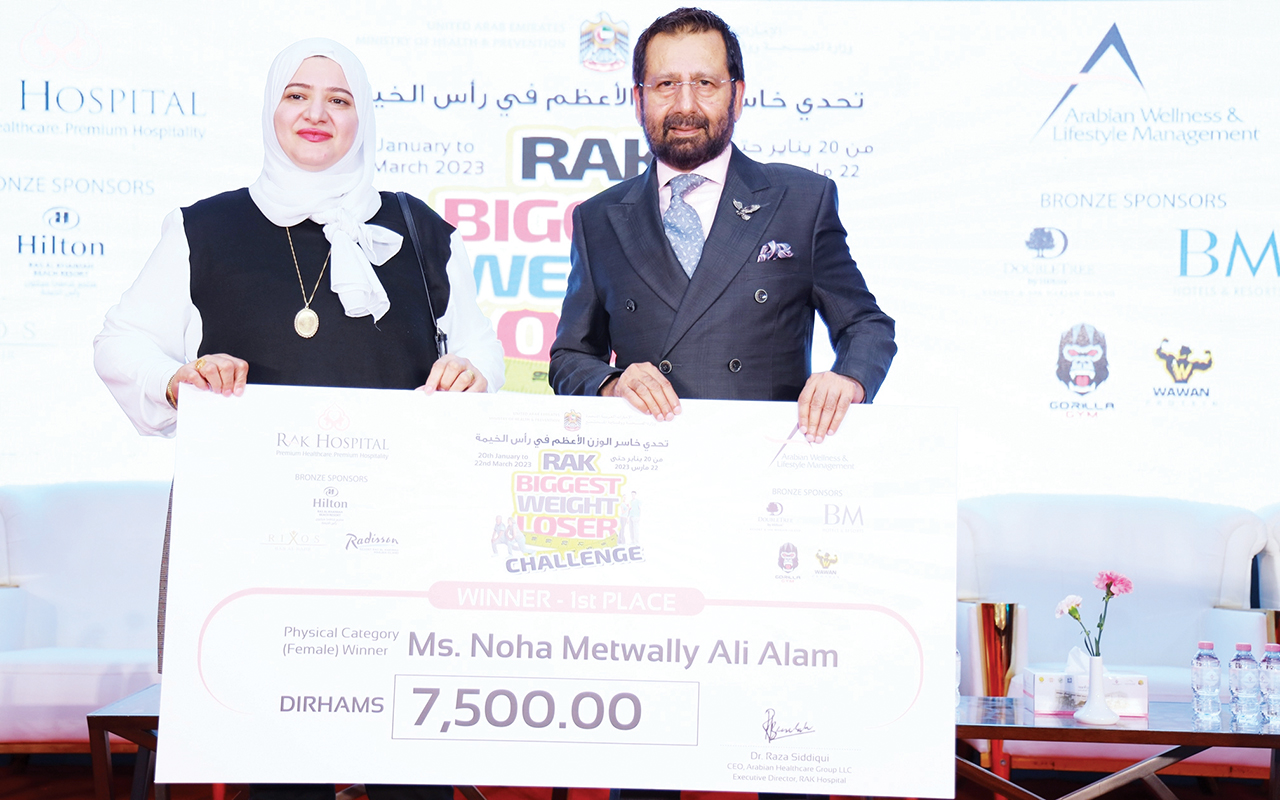 نجح تحدي خاسر الوزن الأعظم في رأس الخيمة، إحدى مبادرات المسؤولية المجتمعية للشركات التي ينظمها مستشفى رأس الخيمة سنوياً بالتعاون مع وزارة الصحة ووقاية المجتمع في رأس الخيمة، في تقديم جرعة غنية من التحفيز والتثقيف والتوجيه للمشاركين خلال رحلتهم لخسارة الوزن وتحقيق الفوز في نهاية المطاف، إذ بذل المشاركون في التحدي جهوداً استثنائية لتحقيق النجاح، إذ بلغت خسارة الوزن لدى الفائزين إجمالياً قدره 576.7 كيلوغراماً.
