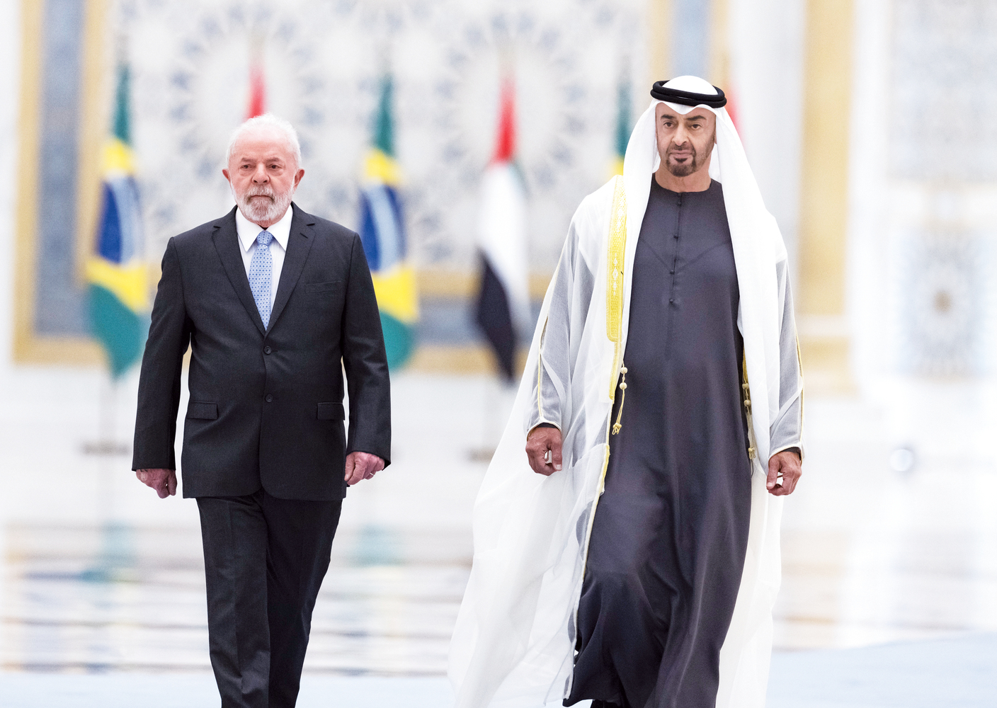 استقبل صاحب السمو الشيخ محمد بن زايد آل نهيان، رئيس الدولة، حفظه الله، لويس إيناسيو لولا دا سيلفا، رئيس جمهورية البرازيل الاتحادية، في 15 أبريل 2023 حيث انضم رئيس مجلس الشيوخ البرازيلي، وحاكم ولاية باهيا، وعدد من أعضاء مجلس الوزراء، علاوة على ممثلي قطاع الأعمال، إلى الوفد الرئاسي لبحث فرص توسيع الشراكة الاستراتيجية بين البلدين.