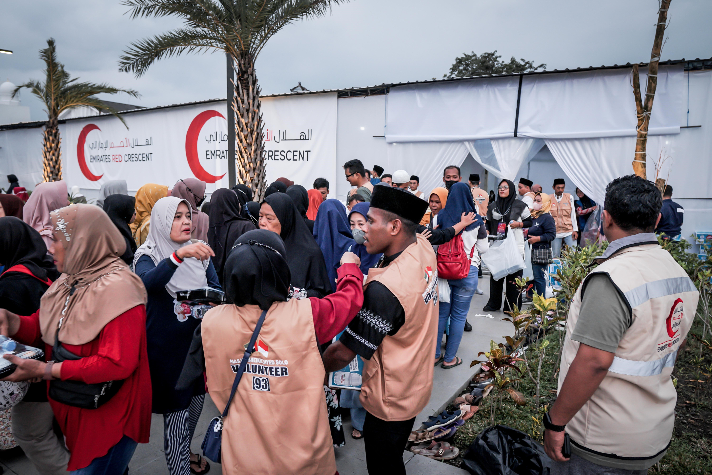 من جهته أكد سعادة حمود عبد الله الجنيبي الأمين العام المكلف لهيئة الهلال الأحمر الإماراتي أهمية الدور الحيوي الذي يضطلع به جامع الشيخ زايد في سولو في ترسيخ معاني الأخوة الإنسانية بين الشعوب، ونشر رسالة المحبة والسلام وتعزيز نهج الوسطية والاعتدال.