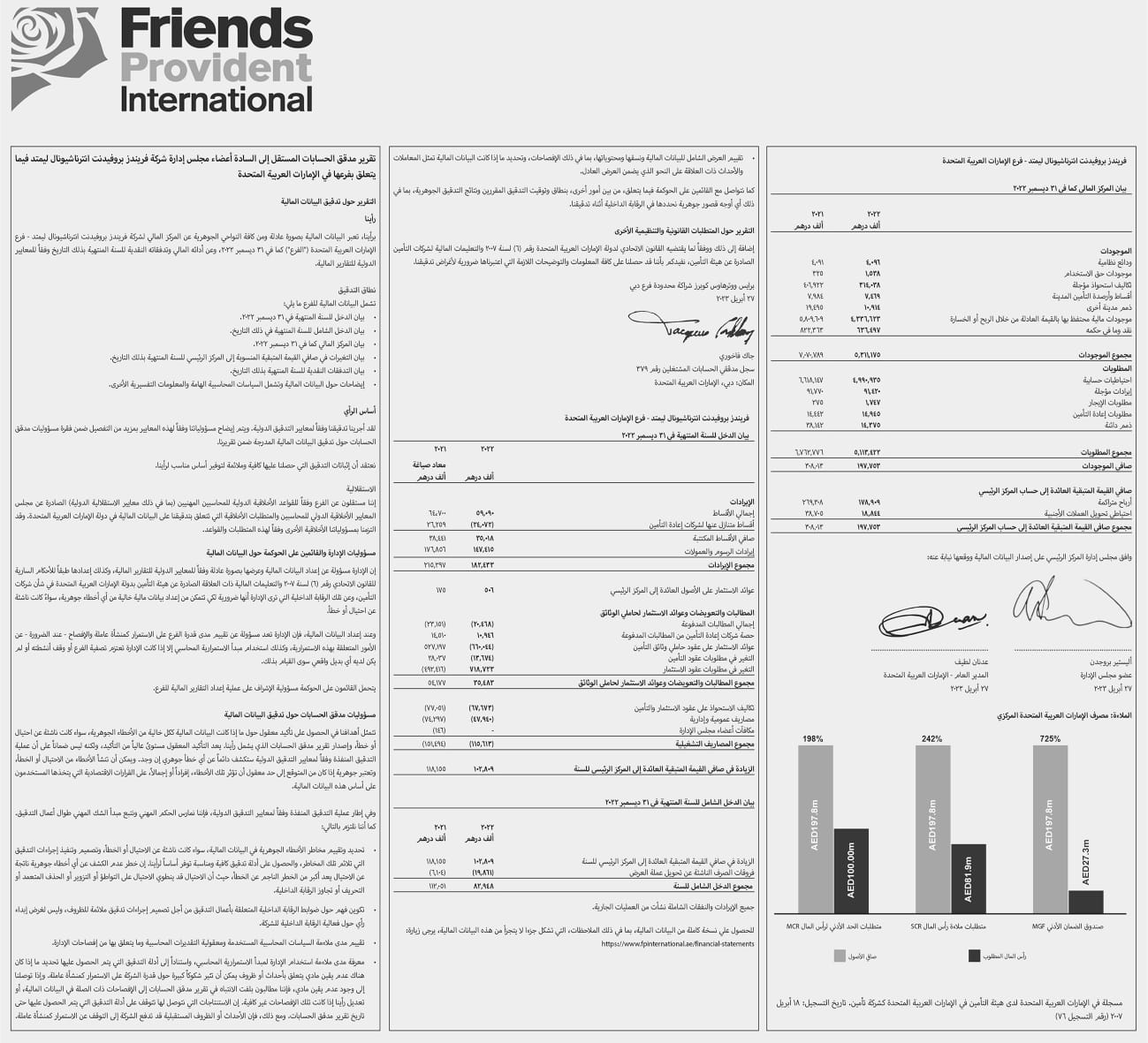 تقرير مدقق الحسابات المستقل إلى أعضاء مجلس إدارة شركة فريندز بروفيدنت انترناشيونال ليمتد البيانتقرير مدقق الحسابات المستقل إلى السادة أعضاء مجلس إدارة شركة فريندز بروفيدنت انترناشيونال ليمتد فيما يتعلق بفرعها بالإمارات