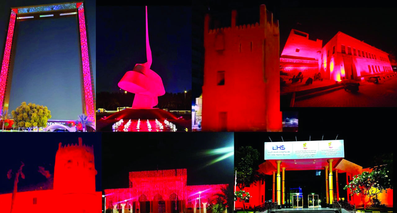 وتحرص جمعية الإمارات للثلاسيميا على تعزيز الوعي بمرض الثلاسيميا بين أفراد المجتمع، بالتعاون مع وزارة الصحة ووقاية المجتمع في كافة إمارات الدولة، حيث تم بهذه المناسبة إضاءة أهم المعالم في كافة إمارات الدولة باللون الأحمر، الذي يرمز للون الدم، لأهميته في استمرار حياة مريض الثلاسيميا، ومن هذه المعالم «برواز دبي»، ونصب الشارقة عاصمة عالمية للكتاب «بيت الحكمة»، والقلعة المربعة «مربعة عجمان»، وحصن أم القيوين، ومسرح رأس الخيمة، ومقر وزارة الصحة ووقاية المجتمع برأس الخيمة، ووزارة الموارد البشرية والتوطين، ومتحف رأس الخيمة الوطني، ومبنى بلدية الفجيرة.