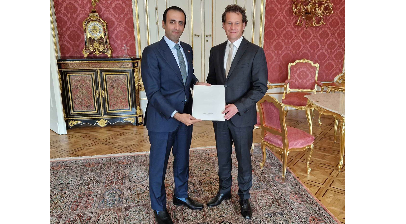 سلم الدعوة سعادة سعود حمد الشامسي، سفير الدولة لدى المجر، إلى سعادة كريشتوف ألتوش، المستشار الدبلوماسي للرئيسة.