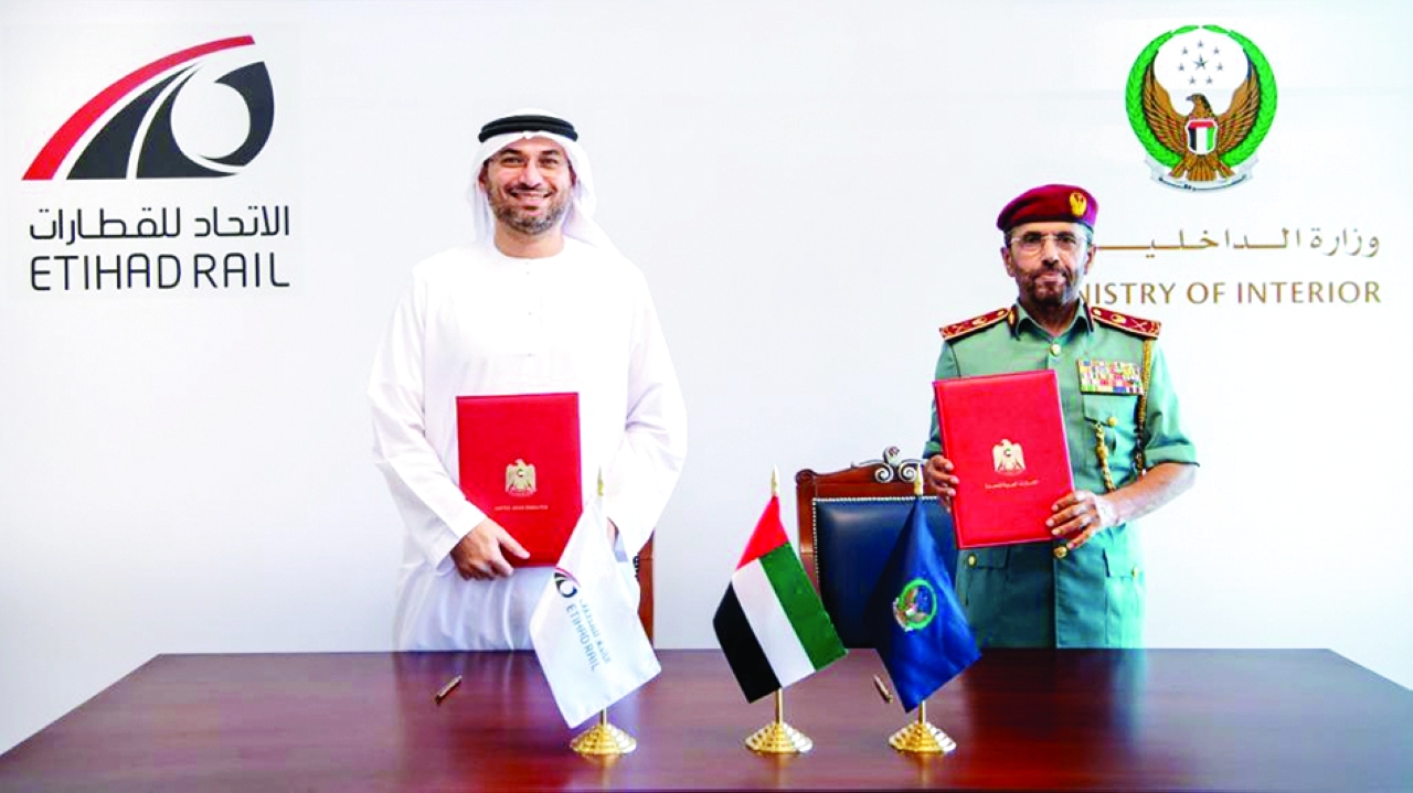 وقّع المذكرة اللواء الركن خليفة حارب الخييلي وكيل وزارة الداخلية وشادي ملك الرئيس التنفيذي لشركة الاتحاد للقطارات بحضور مديري العموم وعدد من المسؤولين من الجانبين.