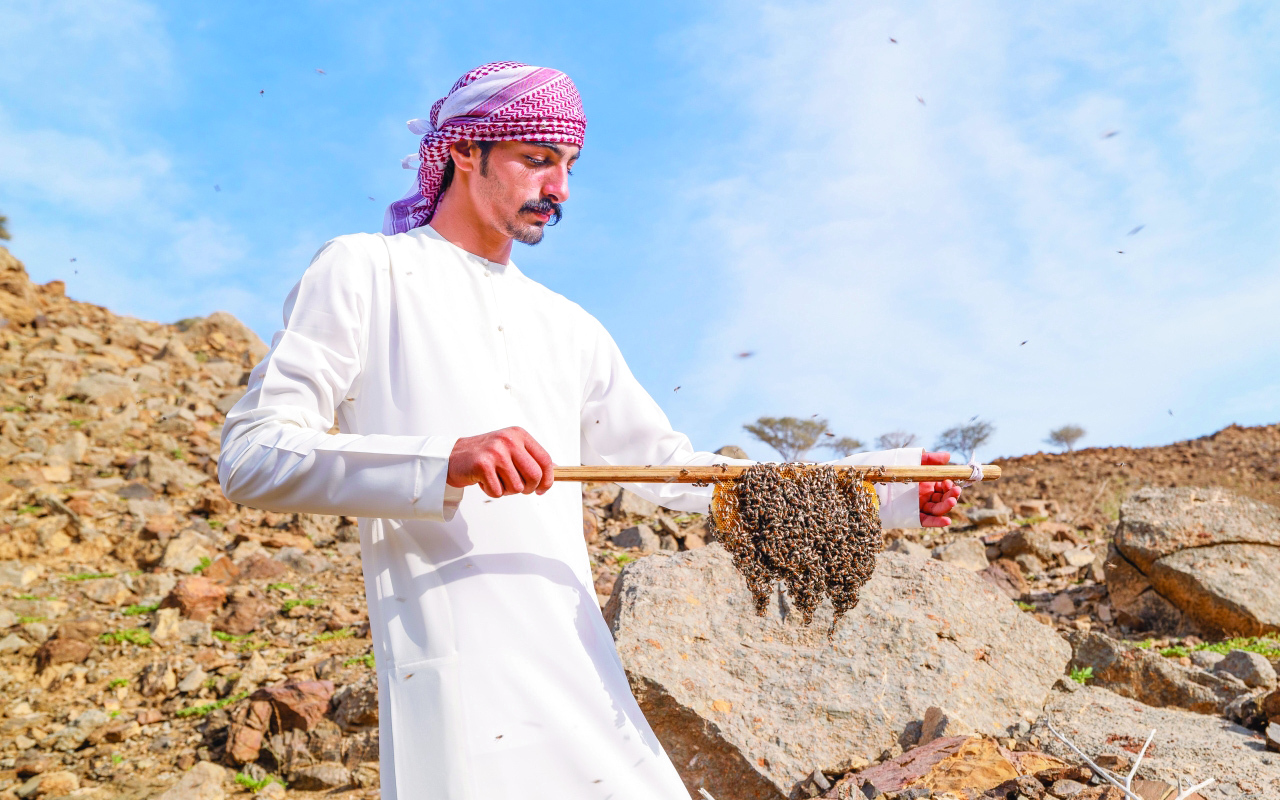 من يرد العسل فعليه تحمل مشاق إنتاجه، هذه من أبجديات تربية النحل، الحرفة المزدهرة في الإمارات وخصوصاً في المناطق التي تضم في ربوعها الجبال الراسيات، فحتا والعين ورأس الخيمة شواهد جلية على خطى المربين القدامى الذين بذلوا الغالي والنفيس في سبيل استدامة هذا القطاع التراثي.