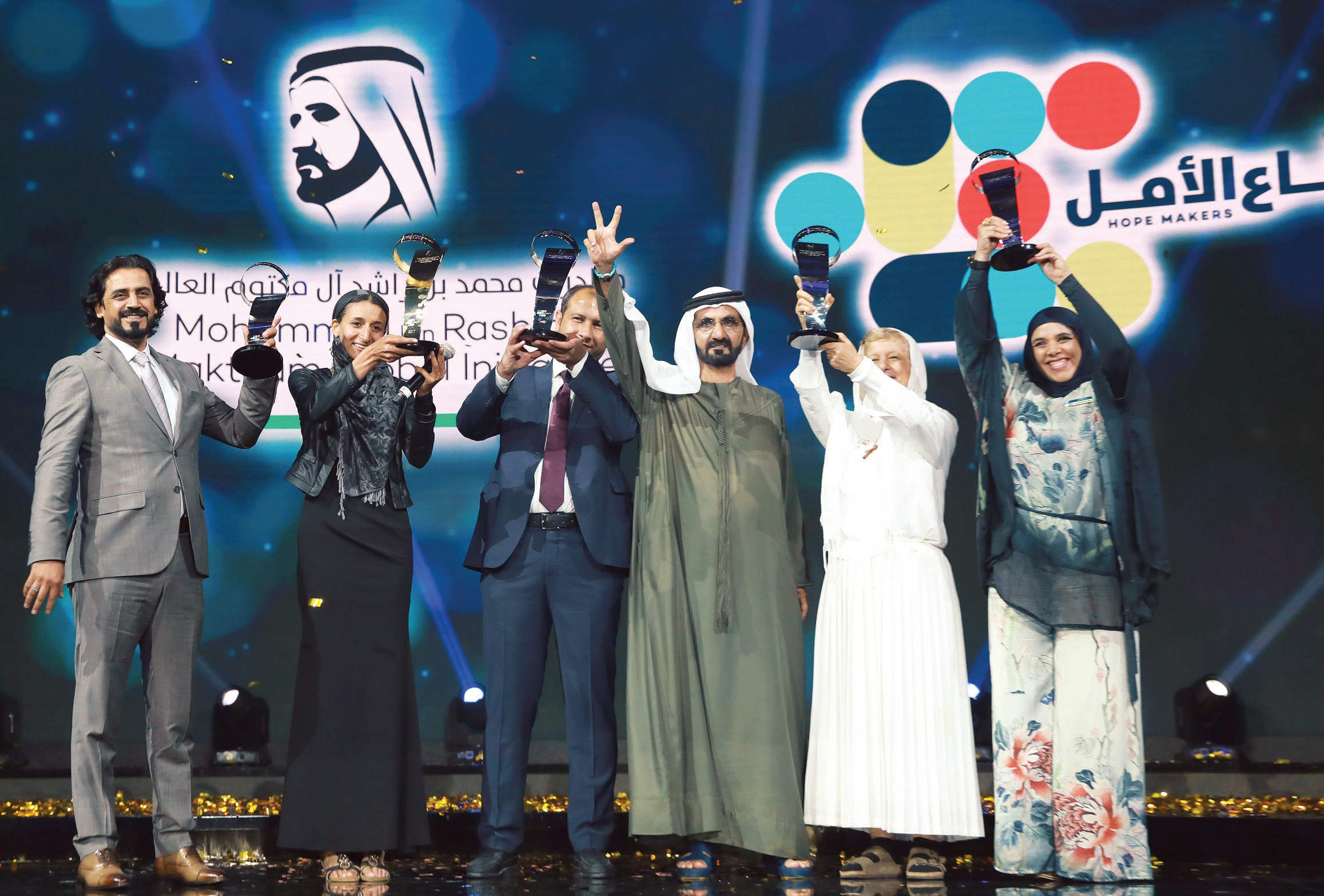 وفي الدورة الثانية من مبادرة "صناع الأمل"؛ التي استقطبت أكثر من 87 ألف طلب ترشيح، كرّم صاحب السمو الشيخ محمد بن راشد آل مكتوم، صنّاع الأمل الخمسة المتأهلين لنهائيات المبادرة بمكافأة مالية بقيمة مليون درهم لكل منهم، لتبلغ قيمة جائزة "صناع الأمل" خمسة ملايين درهم.
