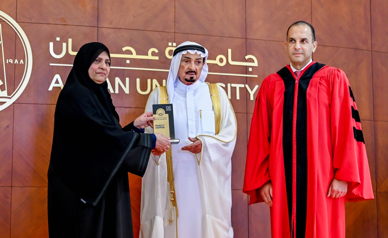 وأقيم حفل التكريم بقاعة الشيخ زايد للمؤتمرات والمعارض في جامعة عجمان.
