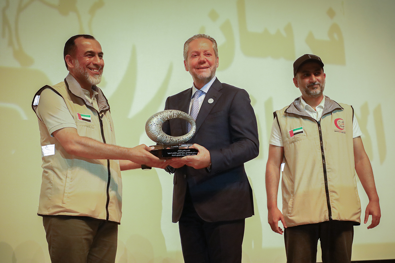 نظمت هيئة الهلال الأحمر الإماراتي، أمس، ضمن عملية "الفارس الشهم 2" التي أطلقتها قيادة العمليات المشتركة في وزارة الدفاع، "ملتقى فرسان الإنسانية"، وذلك بهدف تكريم متطوعي نظيرتها من الهلال الأحمر العربي السوري في أربع محافظات سورية، بحضور معالي المهندس عامر إسماعيل هلال، محافظ اللاذقية، ومحمد شماع، نائب رئيس منظمة الهلال الأحمر العربي السوري، ومحمد خميس الكعبي، رئيس وفد الهلال الأحمر الإماراتي في سوريا، وعددٍ من المتطوعين من كلا الجهتين؛ الذين شاركوا في إطار جهود الإمارات الإنسانية والإغاثية المتواصلة للتخفيف من معاناة الأسر المتضررة بعد زلزال 6 فبراير الماضي.