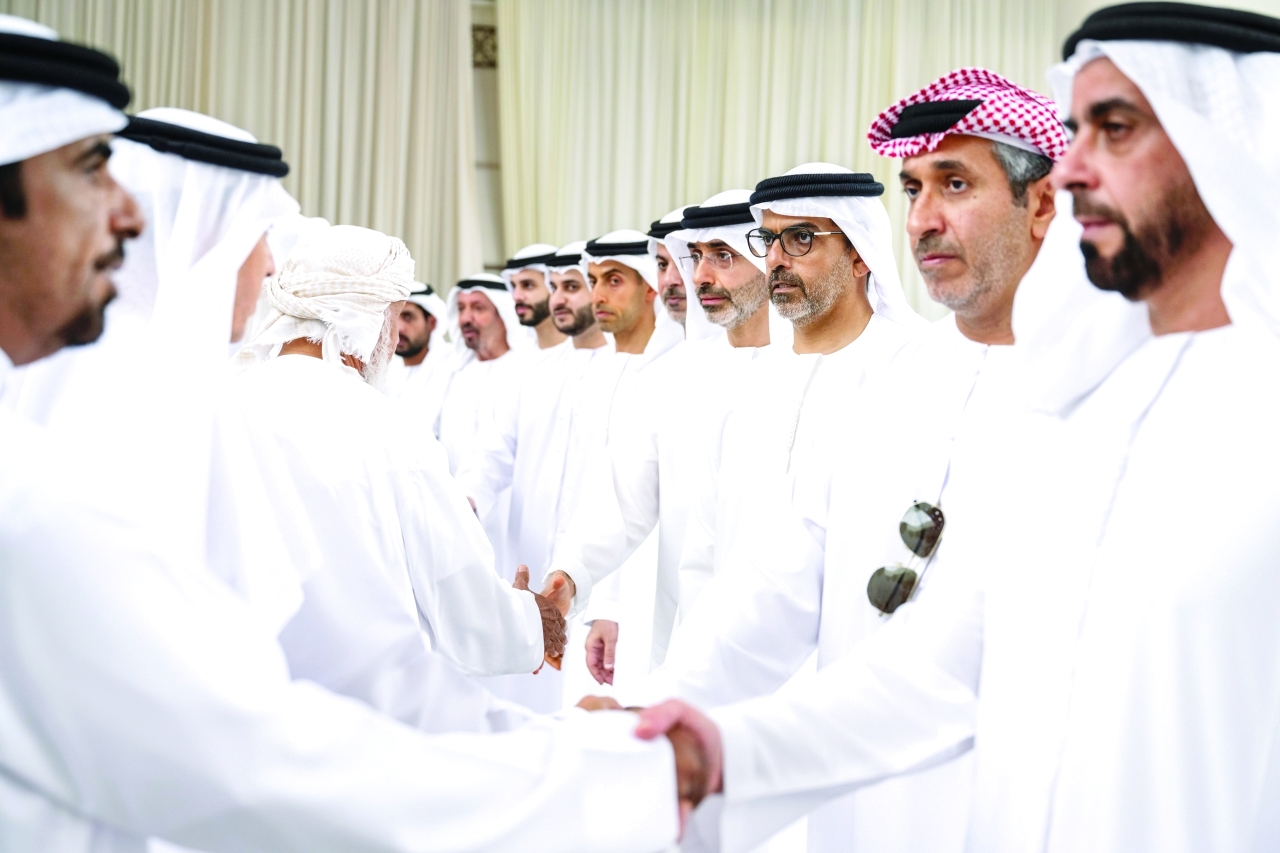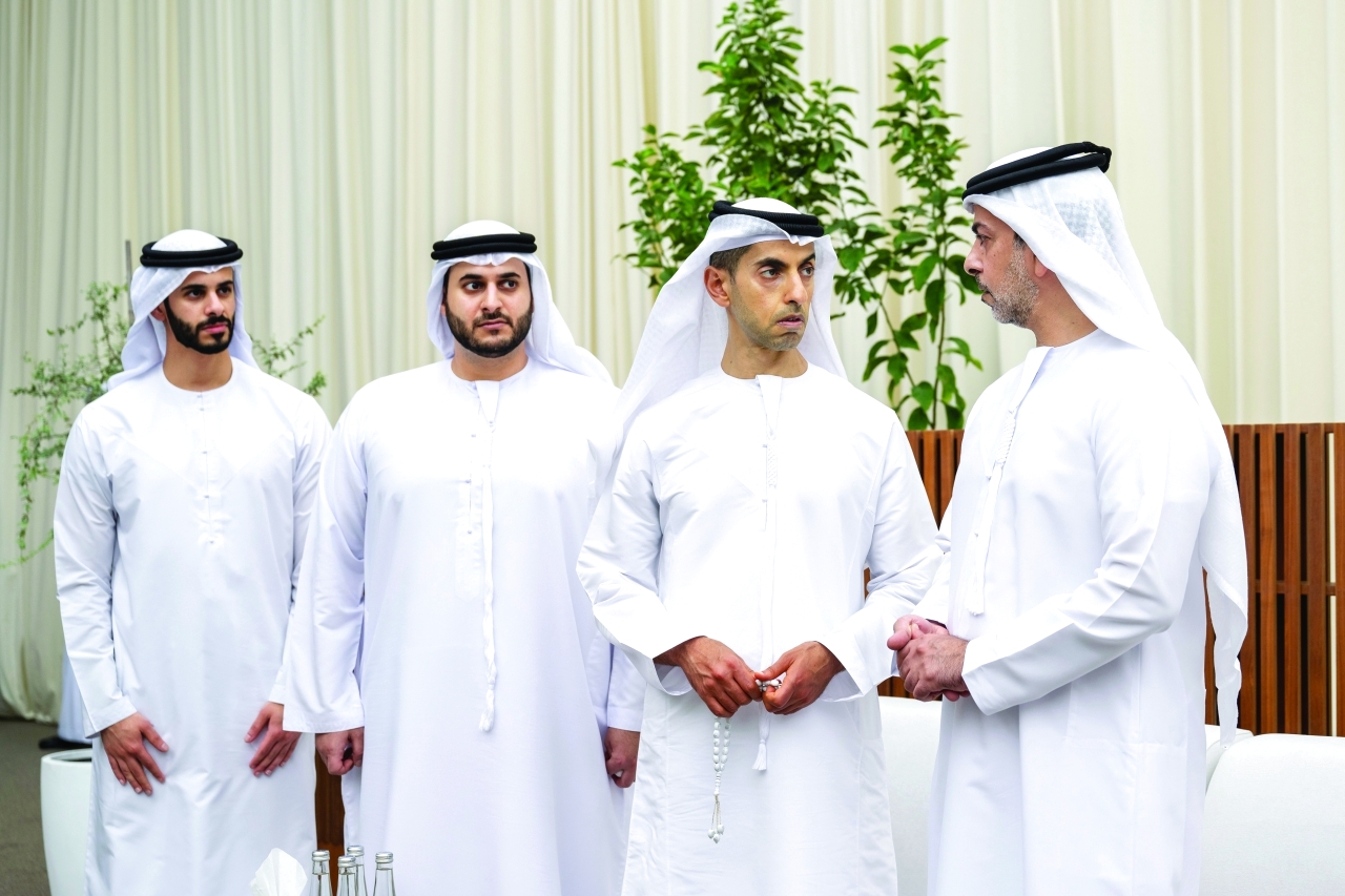 كما تقبل التعازي، سمو الشيخ منصور بن زايد آل نهيان نائب رئيس الدولة نائب رئيس مجلس الوزراء وزير ديوان الرئاسة، وسمو الشيخ خالد بن محمد بن زايد آل نهيان ولي عهد أبوظبي، وسمو الشيخ حمدان بن زايد آل نهيان ممثل حاكم أبوظبي في منطقة الظفرة، وسمو الشيخ طحنون بن محمد آل نهيان ممثل حاكم أبوظبي في منطقة العين، وسمو الشيخ سرور بن محمد آل نهيان، وسمو الشيخ هزاع بن زايد آل نهيان نائب حاكم إمارة أبوظبي، وسمو الشيخ نهيان بن زايد آل نهيان رئيس مجلس أمناء مؤسسة زايد بن سلطان آل نهيان للأعمال الخيرية والإنسانية، والفريق سمو الشيخ سيف بن زايد آل نهيان نائب رئيس مجلس الوزراء وزير الداخلية، وسمو الشيخ فلاح بن زايد آل نهيان، وسمو الشيخ حامد بن زايد آل نهيان، وسمو الشيخ ذياب بن زايد آل نهيان، وسمو الشيخ عبدالله بن زايد آل نهيان وزير الخارجية، وسمو الشيخ عمر بن زايد آل نهيان نائب رئيس مجلس أمناء مؤسسة زايد بن سلطان آل نهيان للأعمال الخيرية والإنسانية، وسمو الشيخ خالد بن زايد آل نهيان رئيس مجلس إدارة مؤسسة زايد العليا لأصحاب الهمم، وسمو الشيخ الدكتور سلطان بن خليفة آل نهيان مستشار صاحب السمو رئيس الدولة، وسمو الشيخ حمدان بن محمد بن زايد آل نهيان، ومعالي الشيخ محمد بن حمد بن طحنون آل نهيان مستشار الشؤون الخاصة في ديوان الرئاسة، ومعالي الشيخ نهيان بن مبارك آل نهيان وزير التسامح والتعايش، وعدد من الشيوخ.