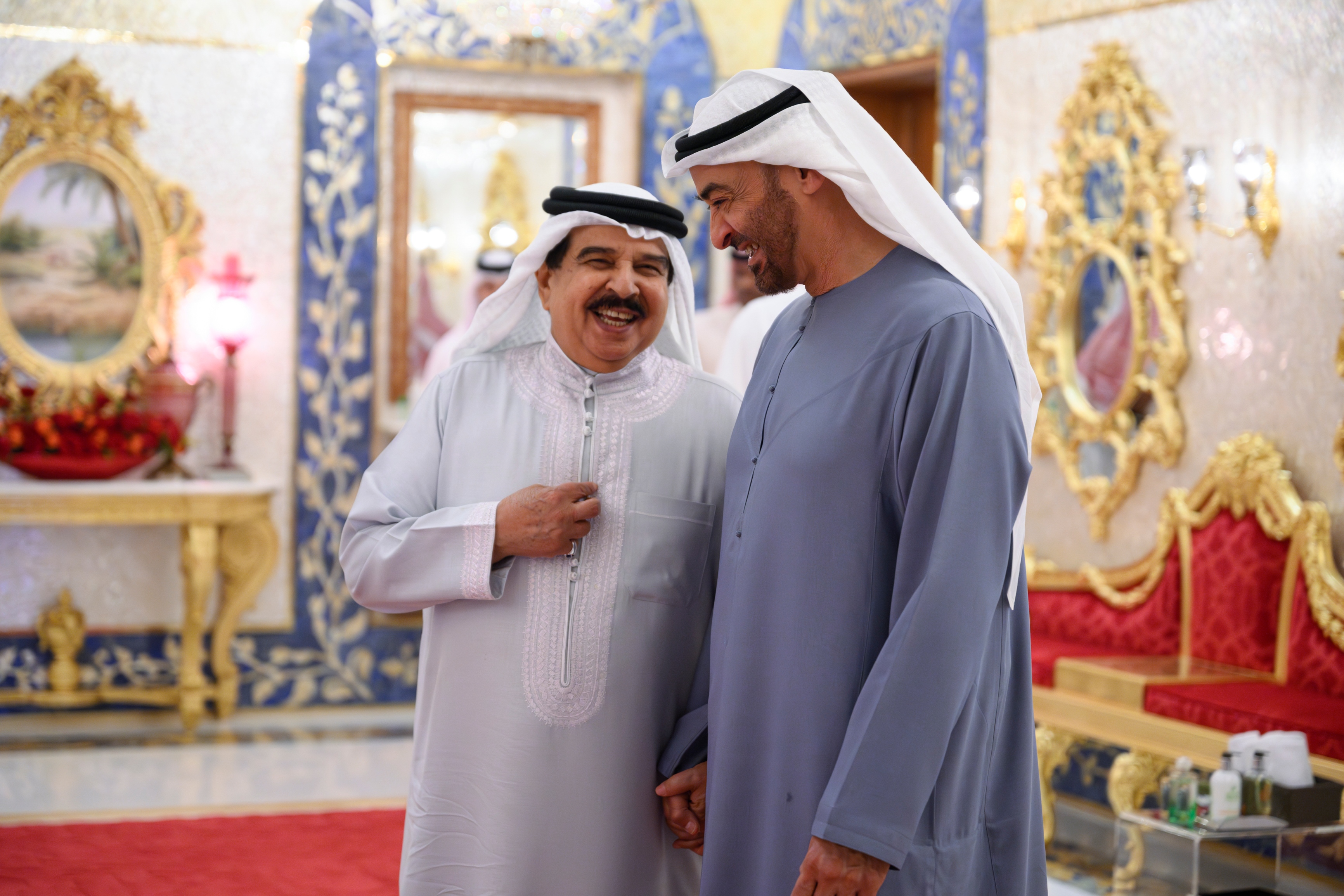 استقبل صاحب الجلالة الملك حمد بن عيسى آل خليفة ملك مملكة البحرين الشقيقة اليوم - في مقر إقامته في أبوظبي - أخاه صاحب السمو الشيخ محمد بن زايد آل نهيان رئيس الدولة "حفظه الله".
