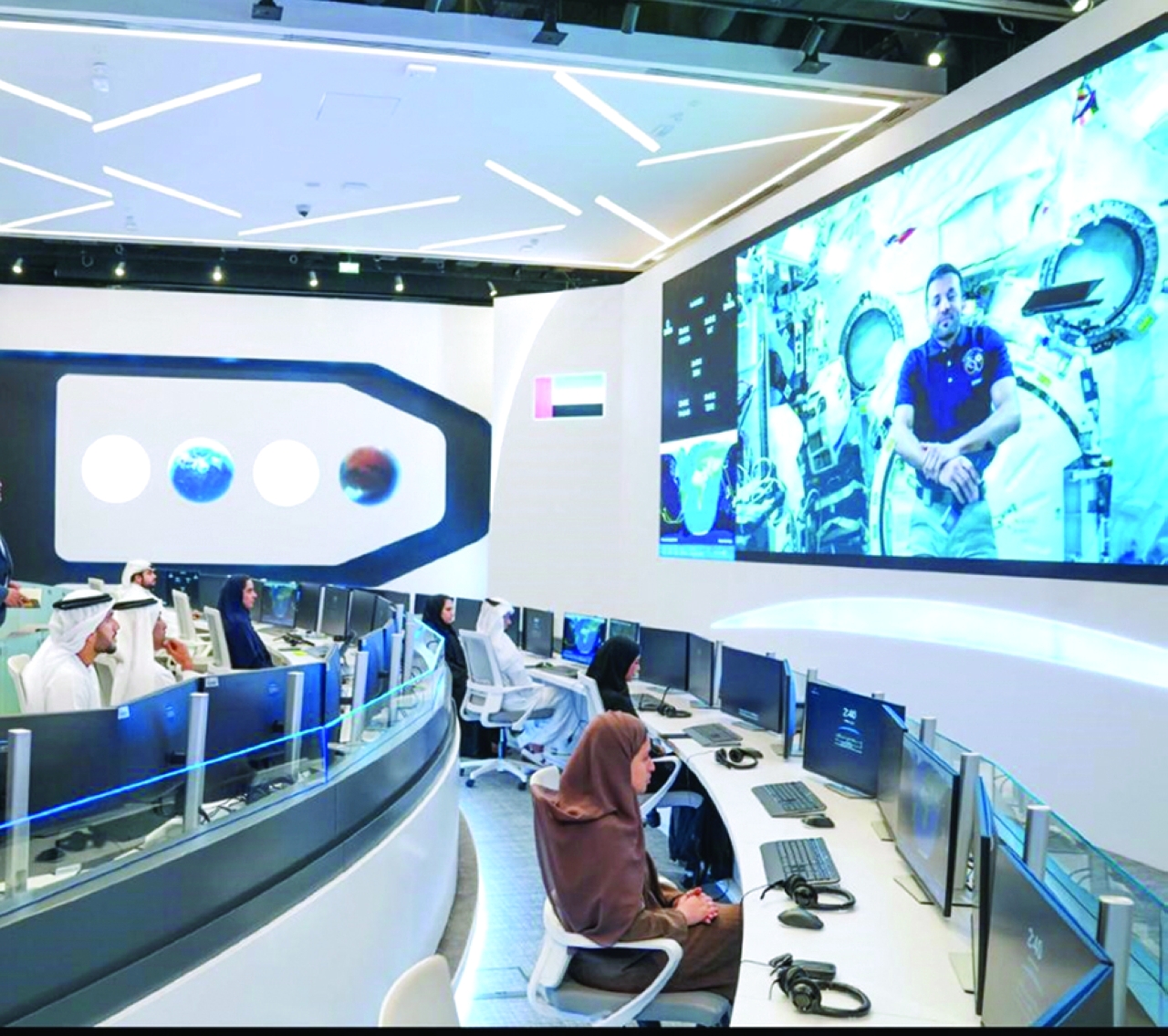نظم مركز محمد بن راشد للفضاء، مساء أمس، حدث «لقاء من الفضاء»، مع رائد الفضاء الإماراتي سلطان النيادي، خلال اتصال مباشر من محطة الفضاء الدولية وعدد من ممثلي وسائل الإعلام في الدولة للحديث عن أبرز المهام والتجارب التي يجريها في الشهر الأخير ضمن أطول مهمة فضائية في تاريخ العرب، والتي يستكمل فيها ما تبقى من التجارب كما هو محدد ضمن قائمة المهمة التي بدأها قبيل 5 أشهر.